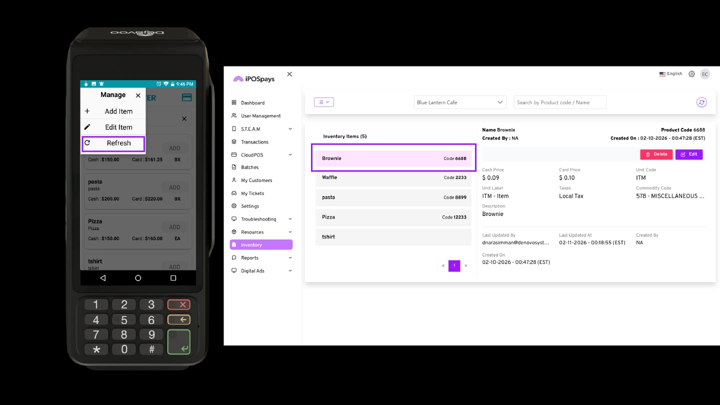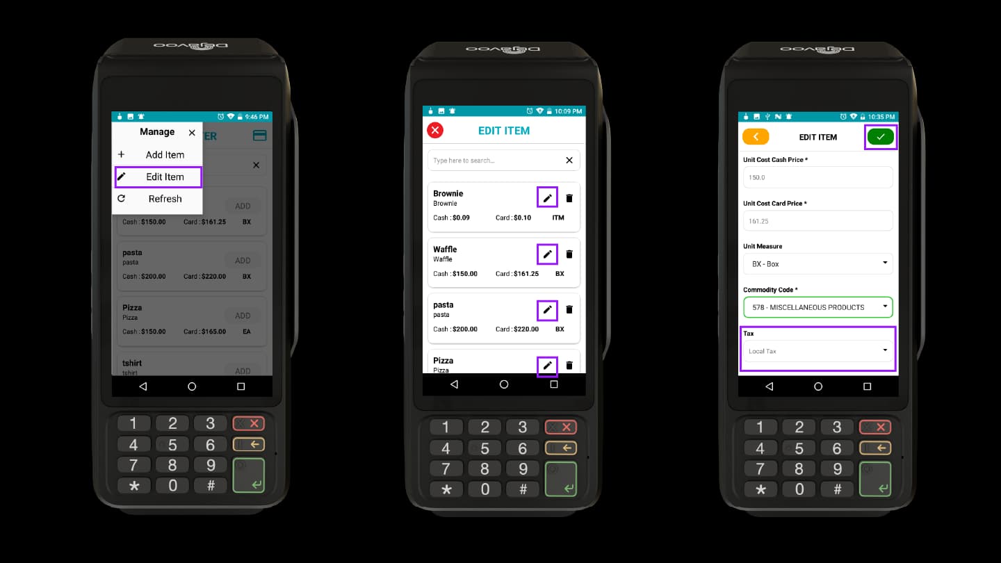 Reflect newly added or updated items, including tax changes, on the terminal.