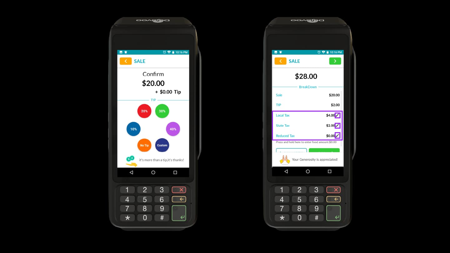 Merchants can apply and edit taxes during a sale directly on the payment terminal.