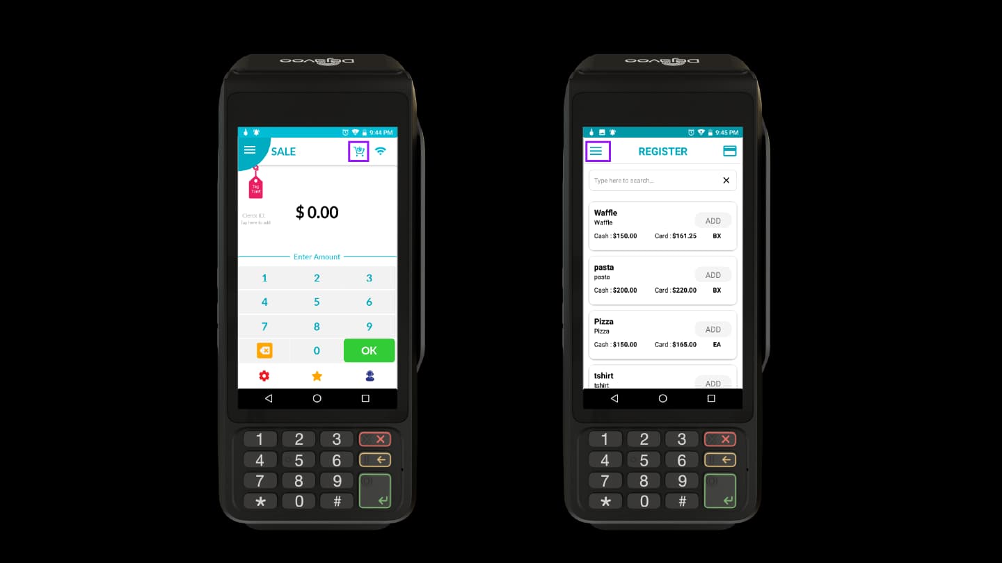 Once the ISO enables Register Lite and inventory (including taxes) is configured in the Merchant Portal, merchants can access Register Lite directly from the payment terminal.