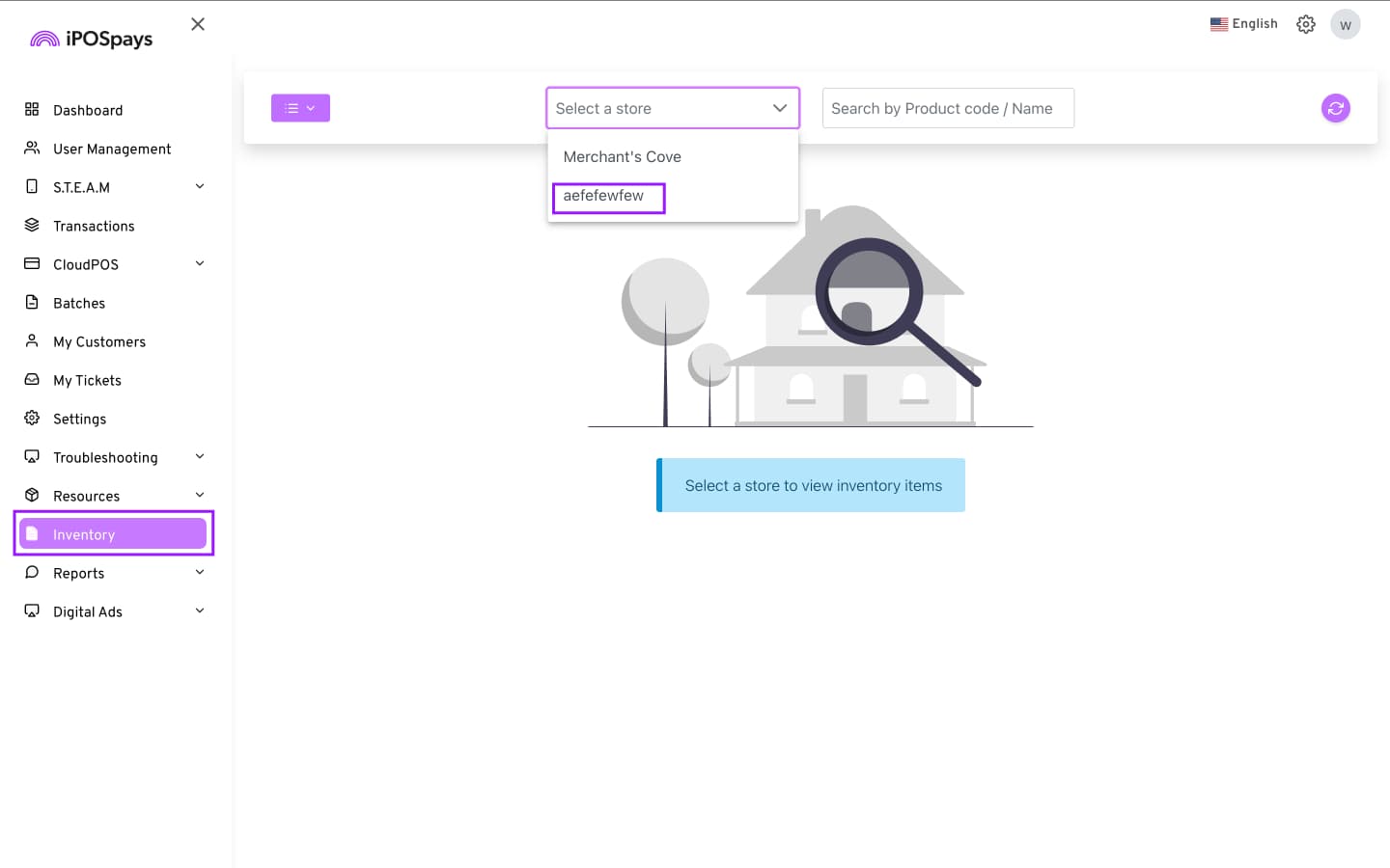 Select your store from the drop-down at the top left corner of the screen.
