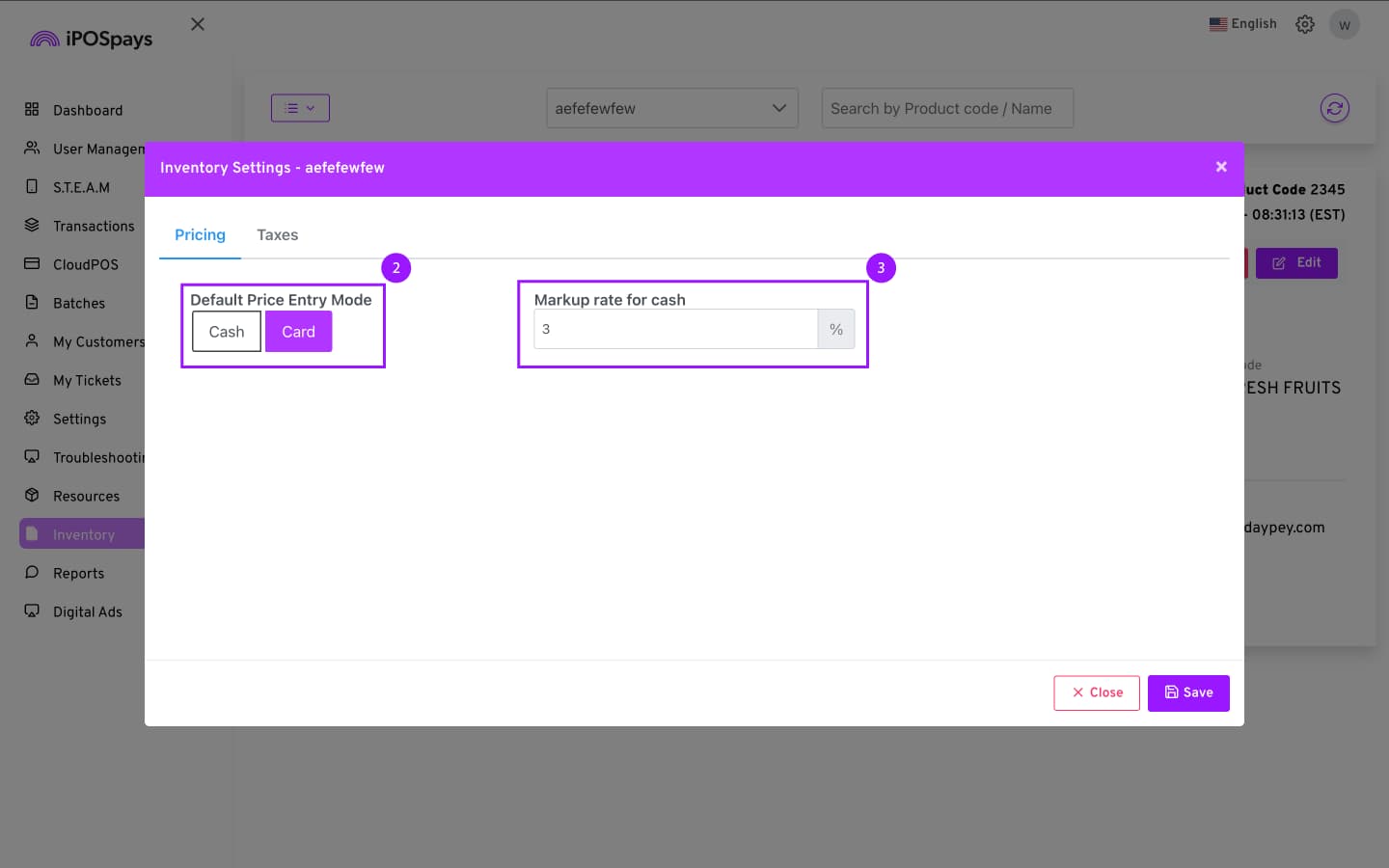 Markup Rate (Card/Cash): Enter the percentage markup applied to card or cash transactions. This option may adjust to display the alternative based on the configured Default Price Entry Mode.