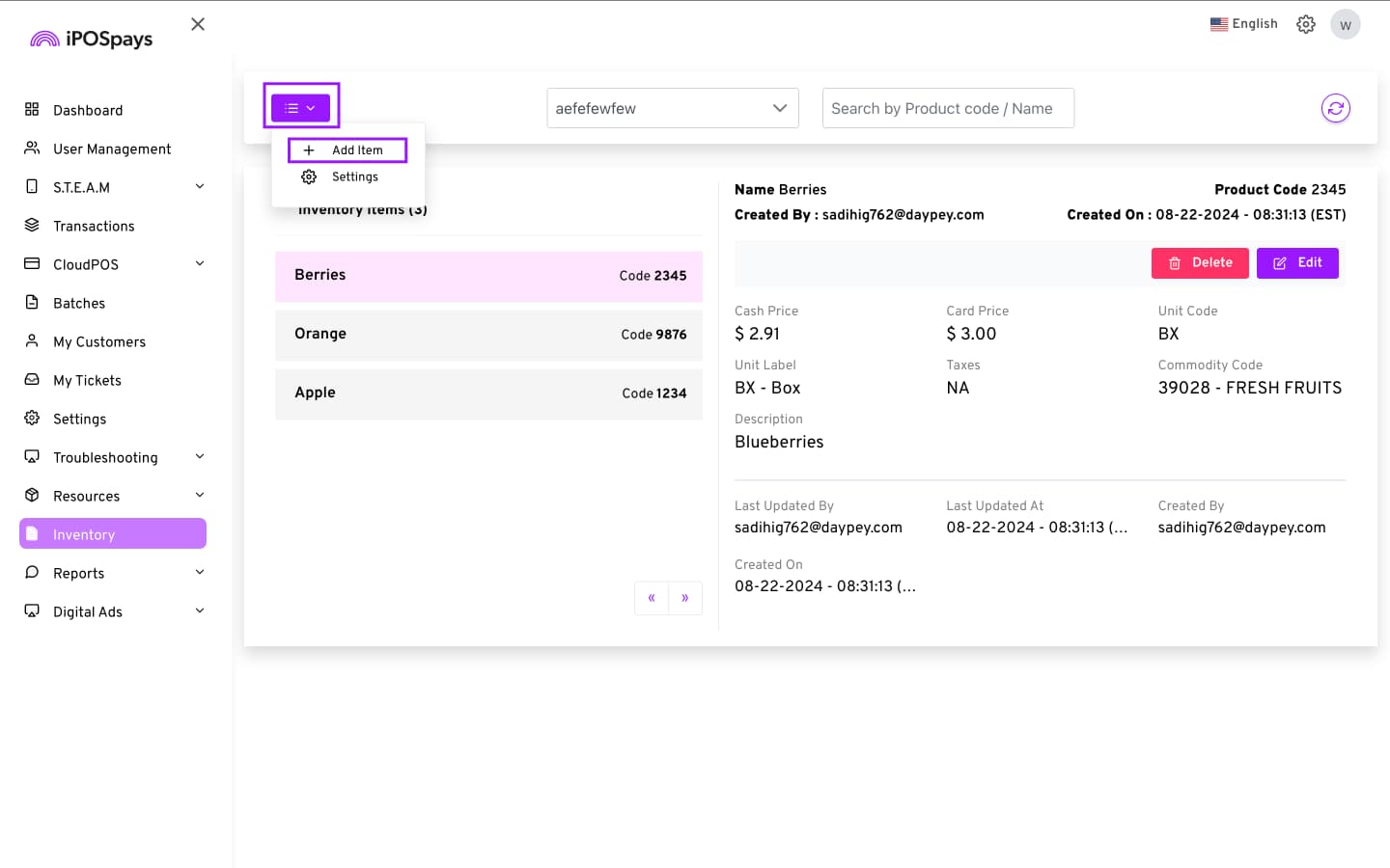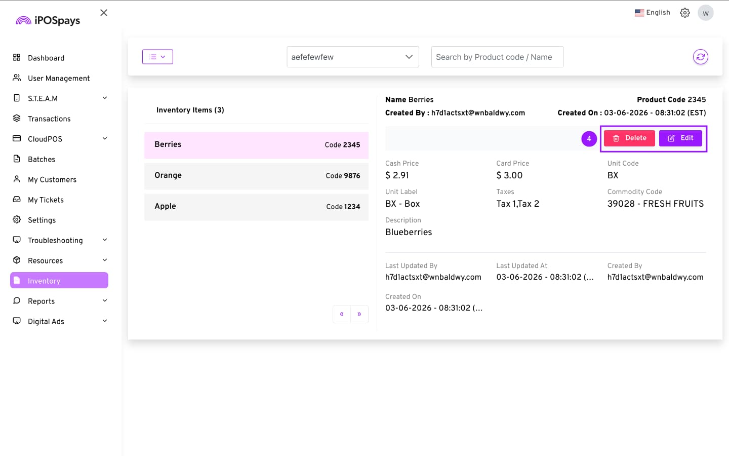- You can edit or delete items later from the Inventory module.