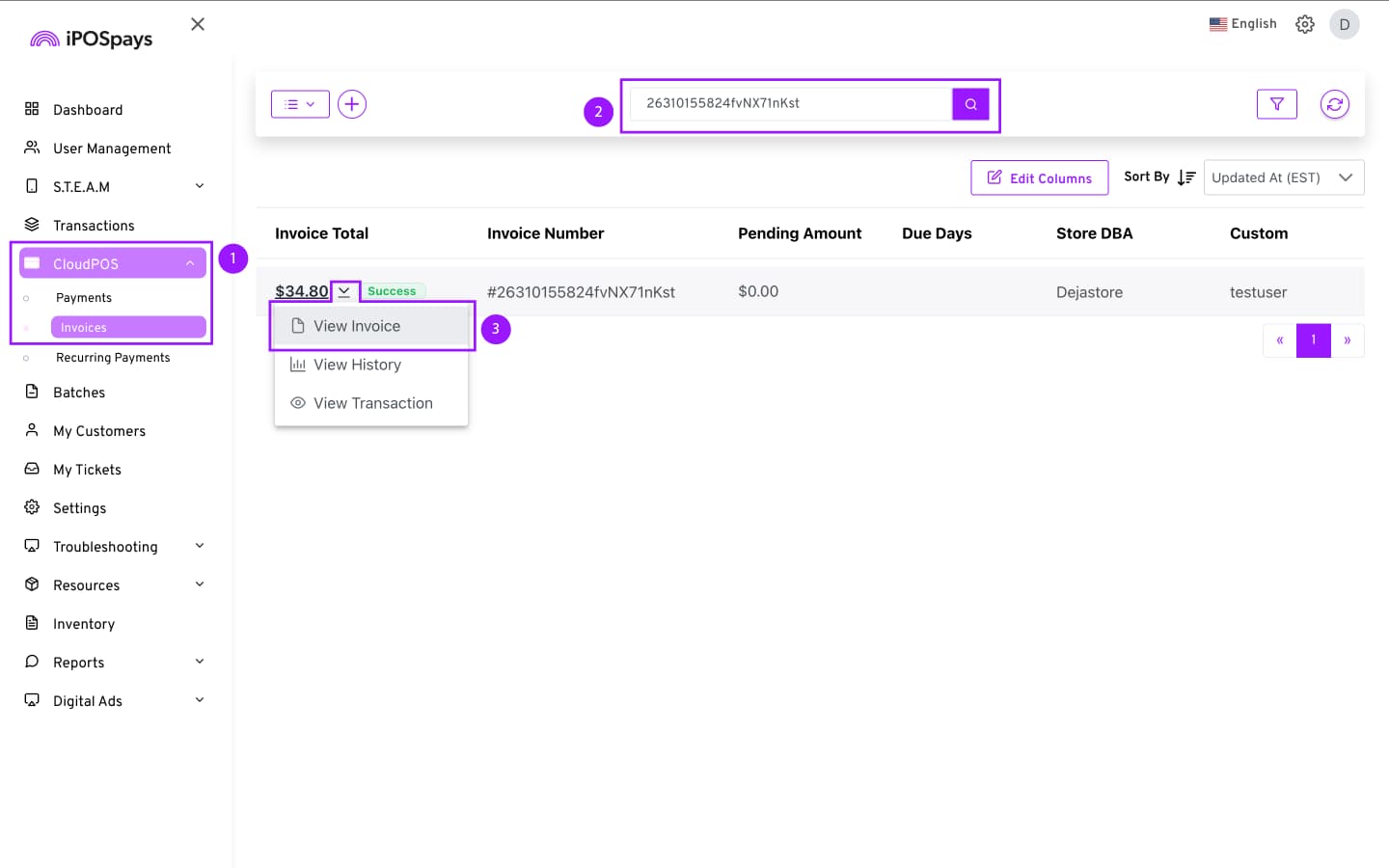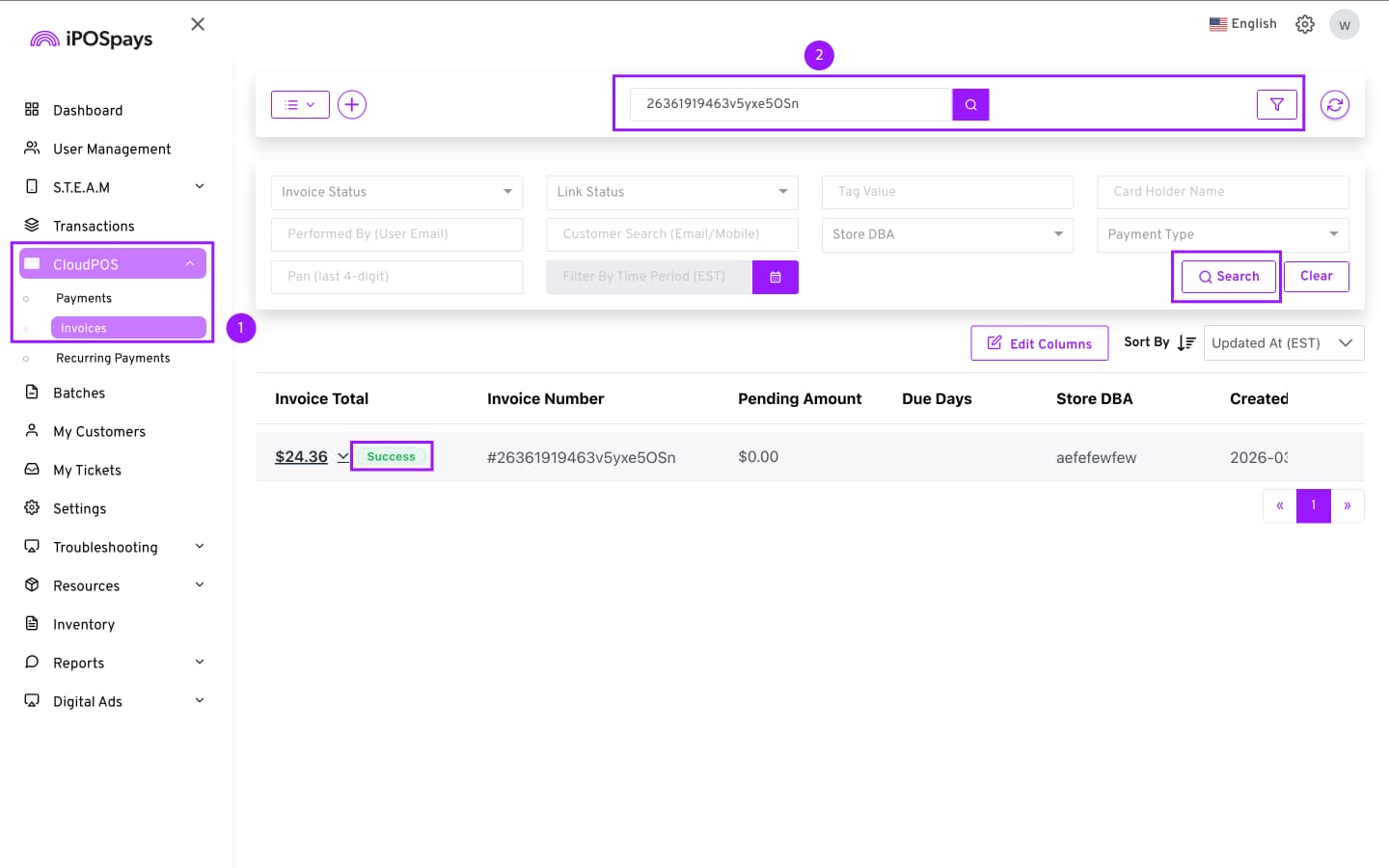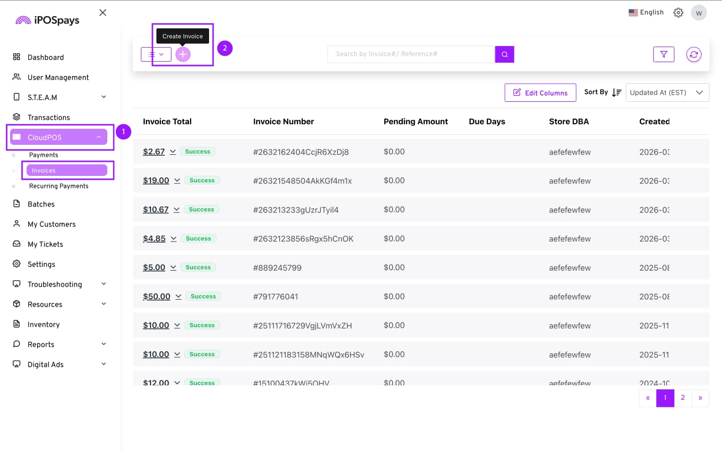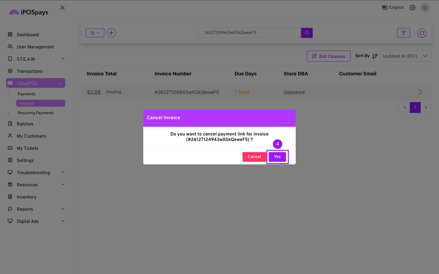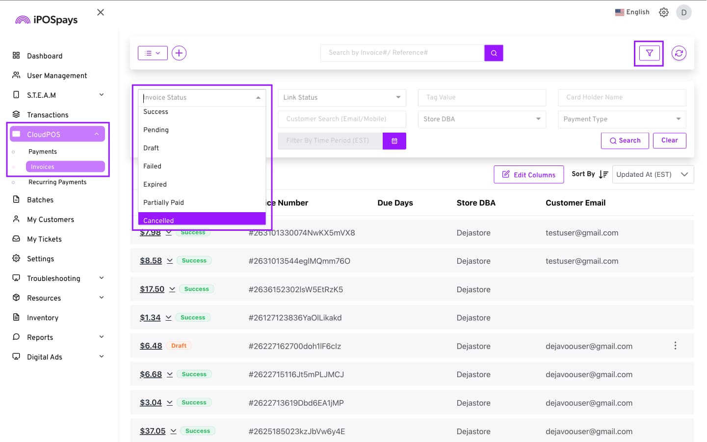 Click CloudPOS → Invoices.