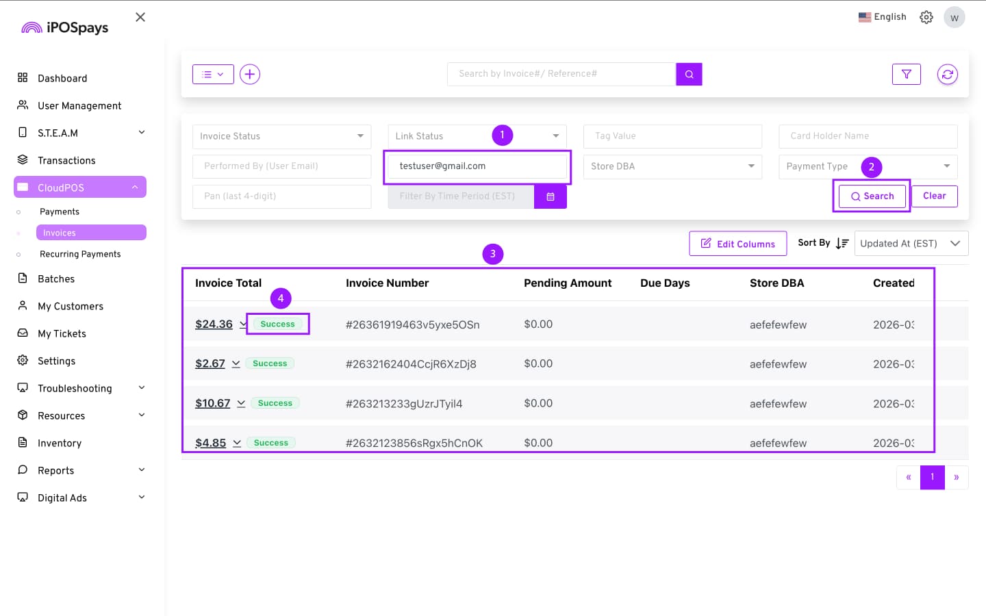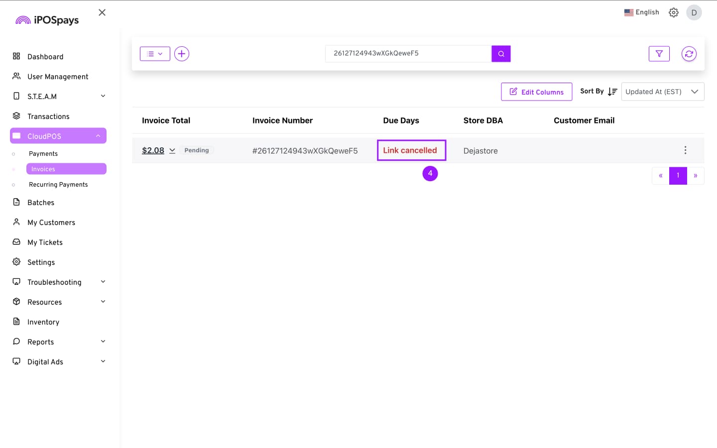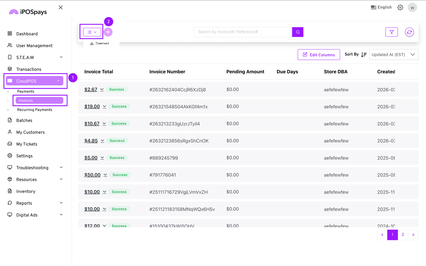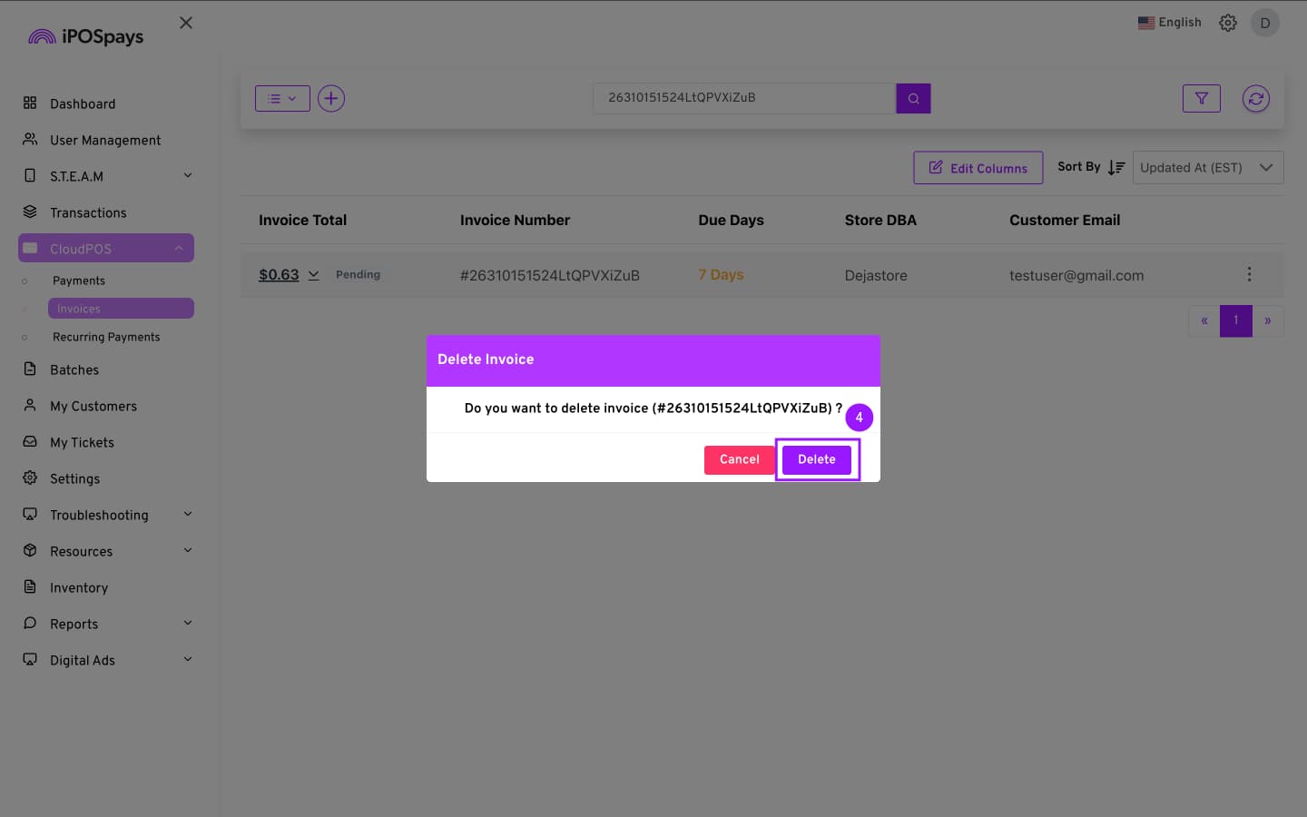 Click CloudPOS → Invoices.