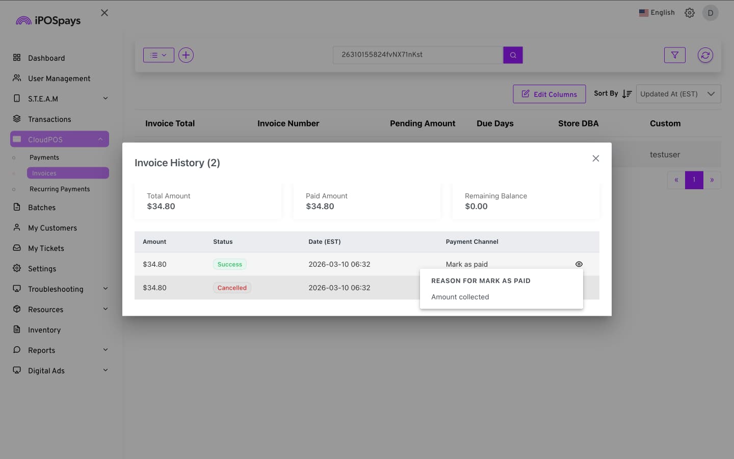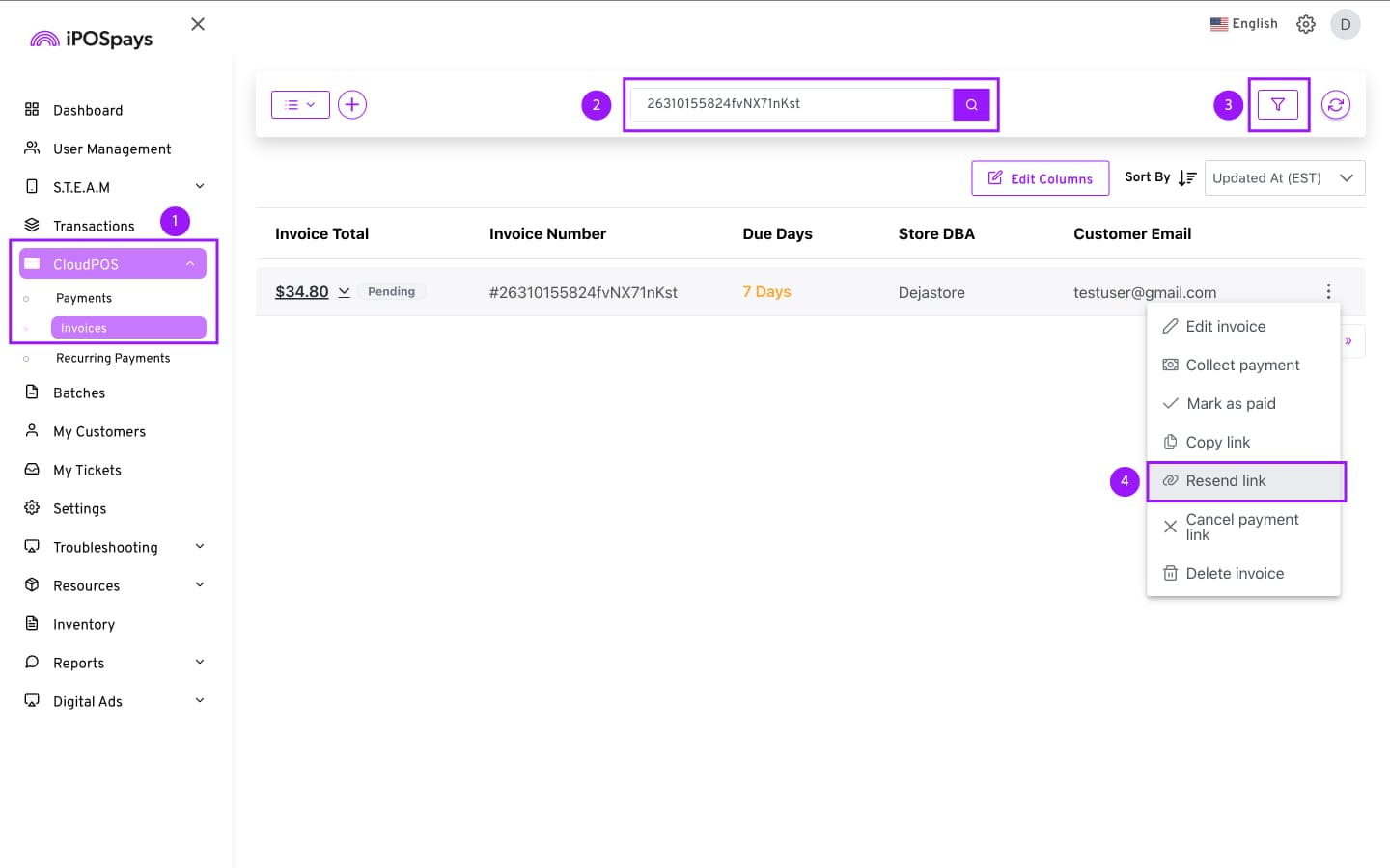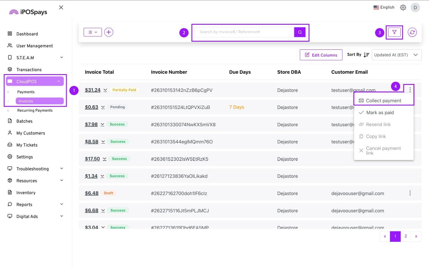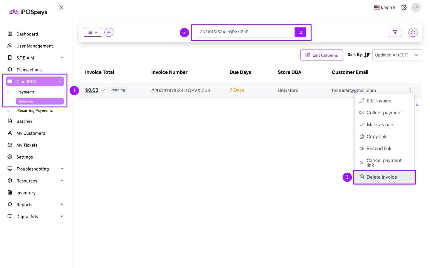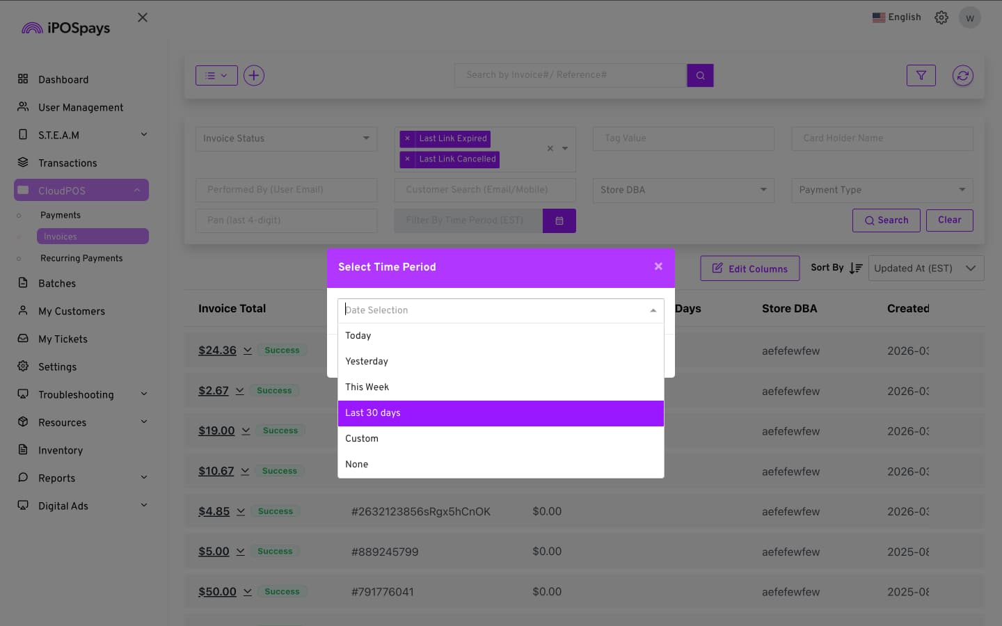 Click CloudPOS → Invoices.