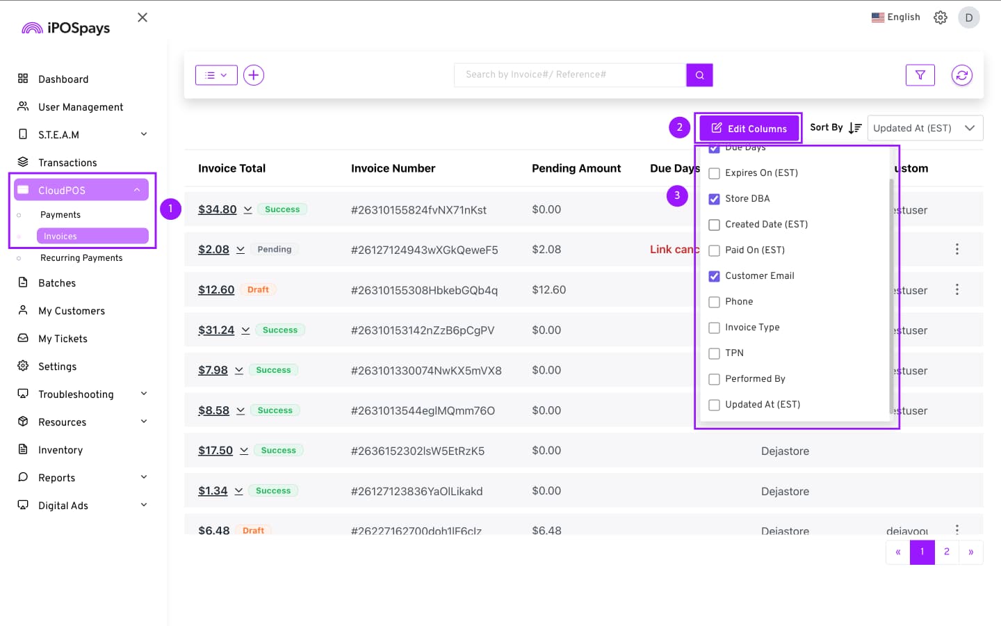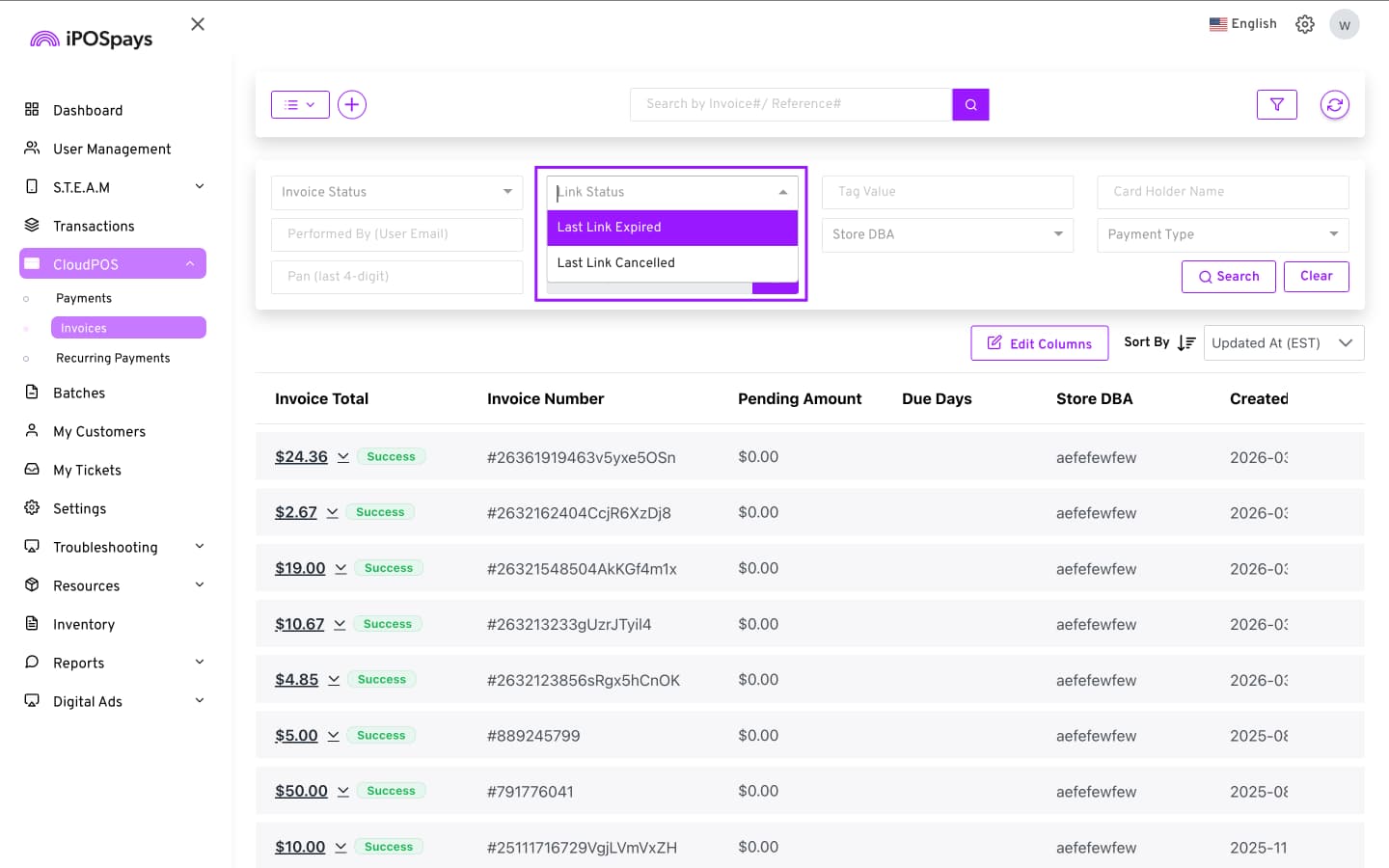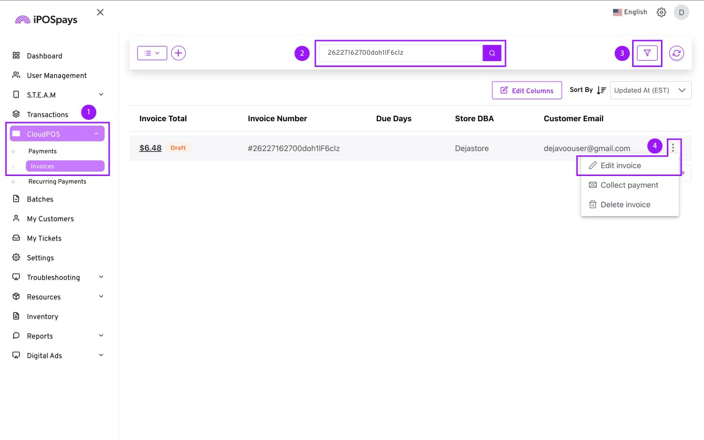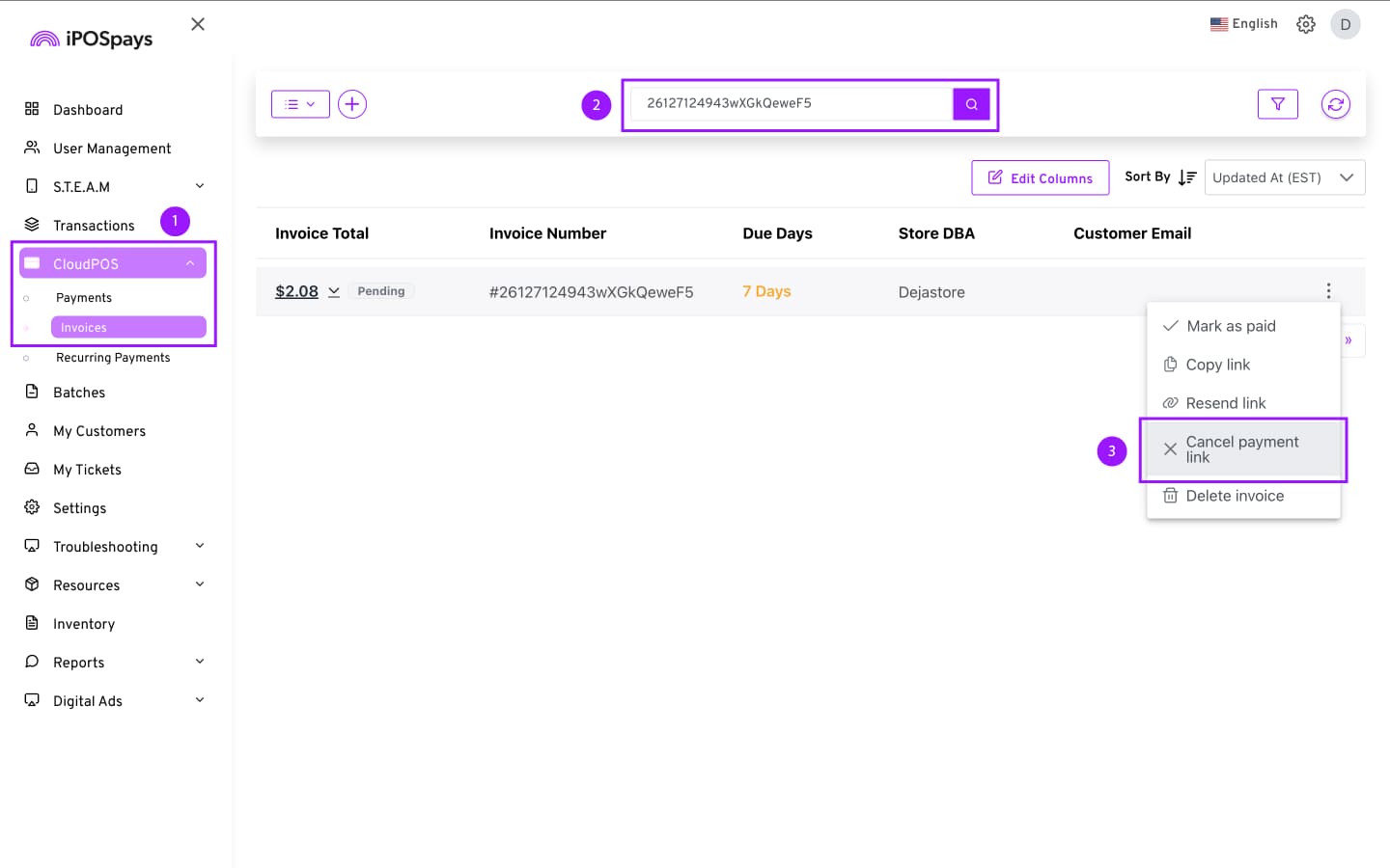 Click CloudPOS → Invoices.