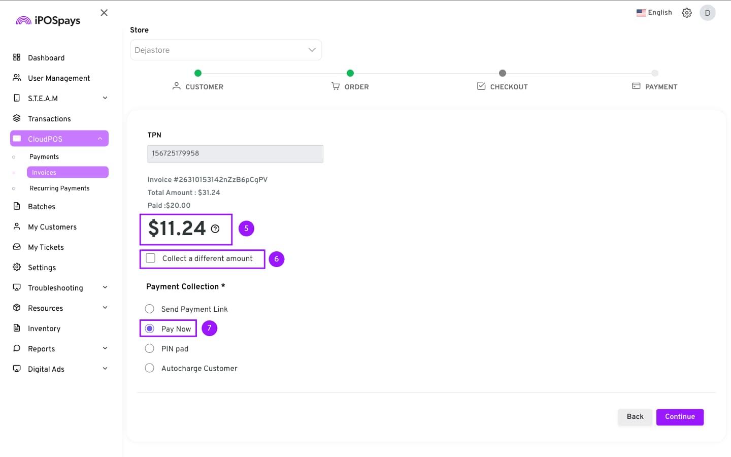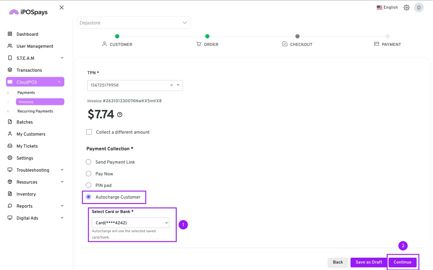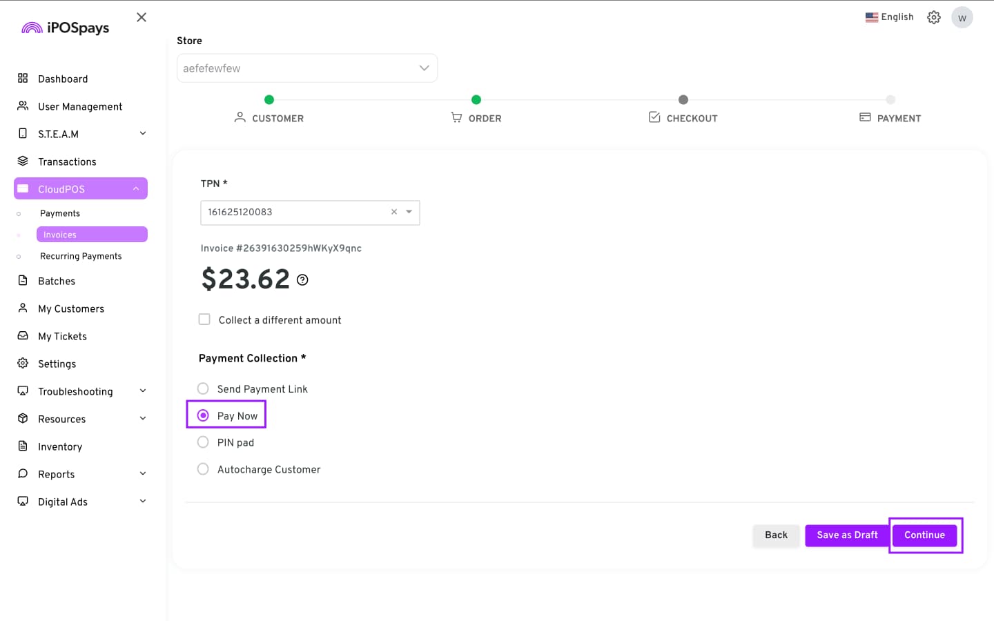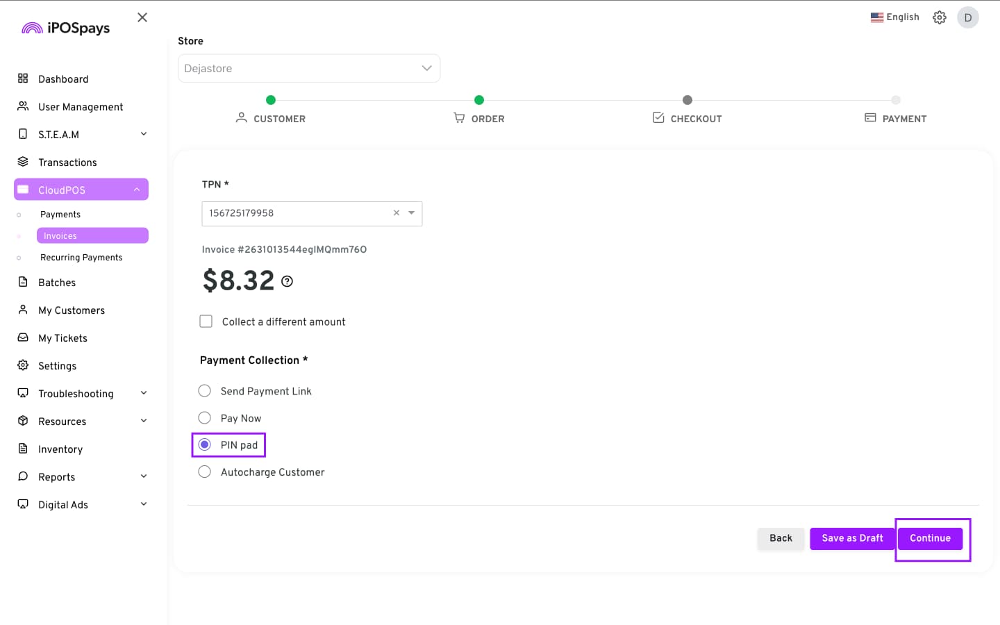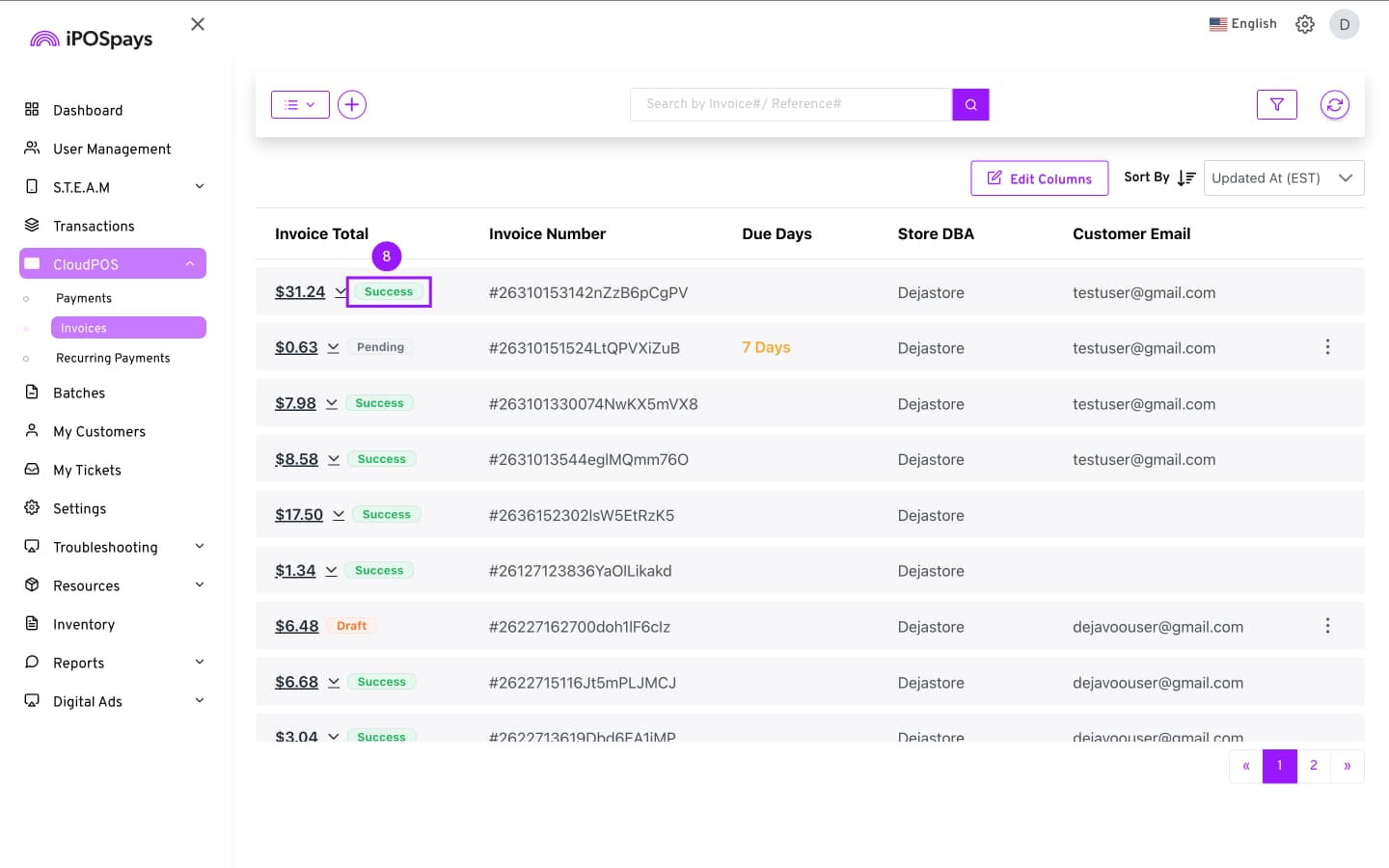 Click CloudPOS → Invoices.