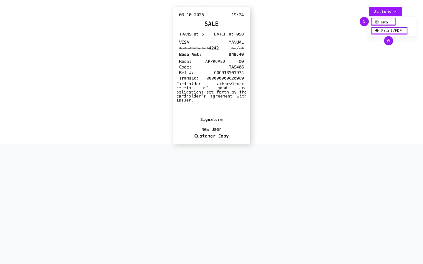 All transaction related information including Card Holder Name, transaction ID, etc will be displayed.