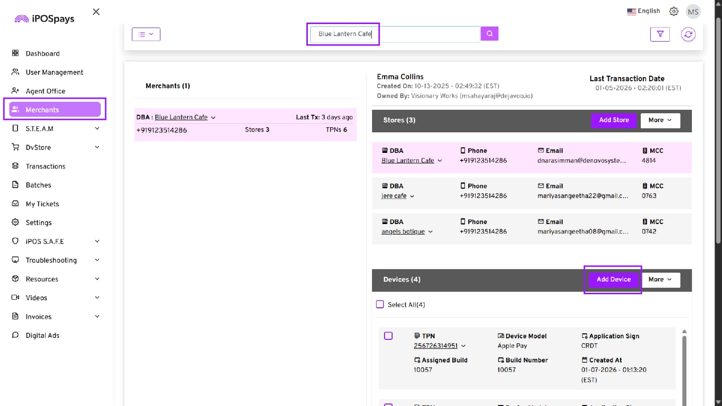 How to Add a Device Under an Existing Merchant on the iPOSpays Portal