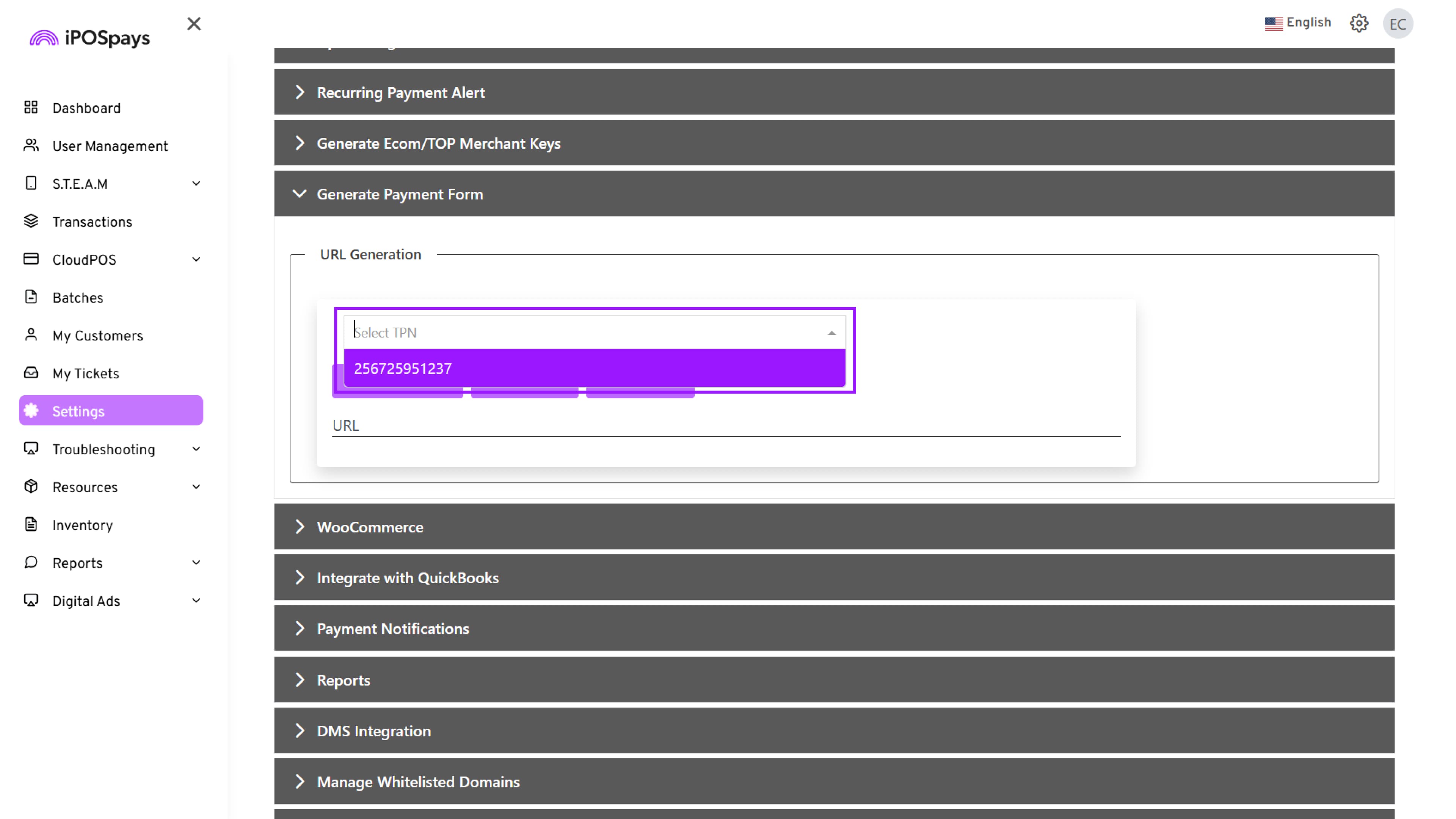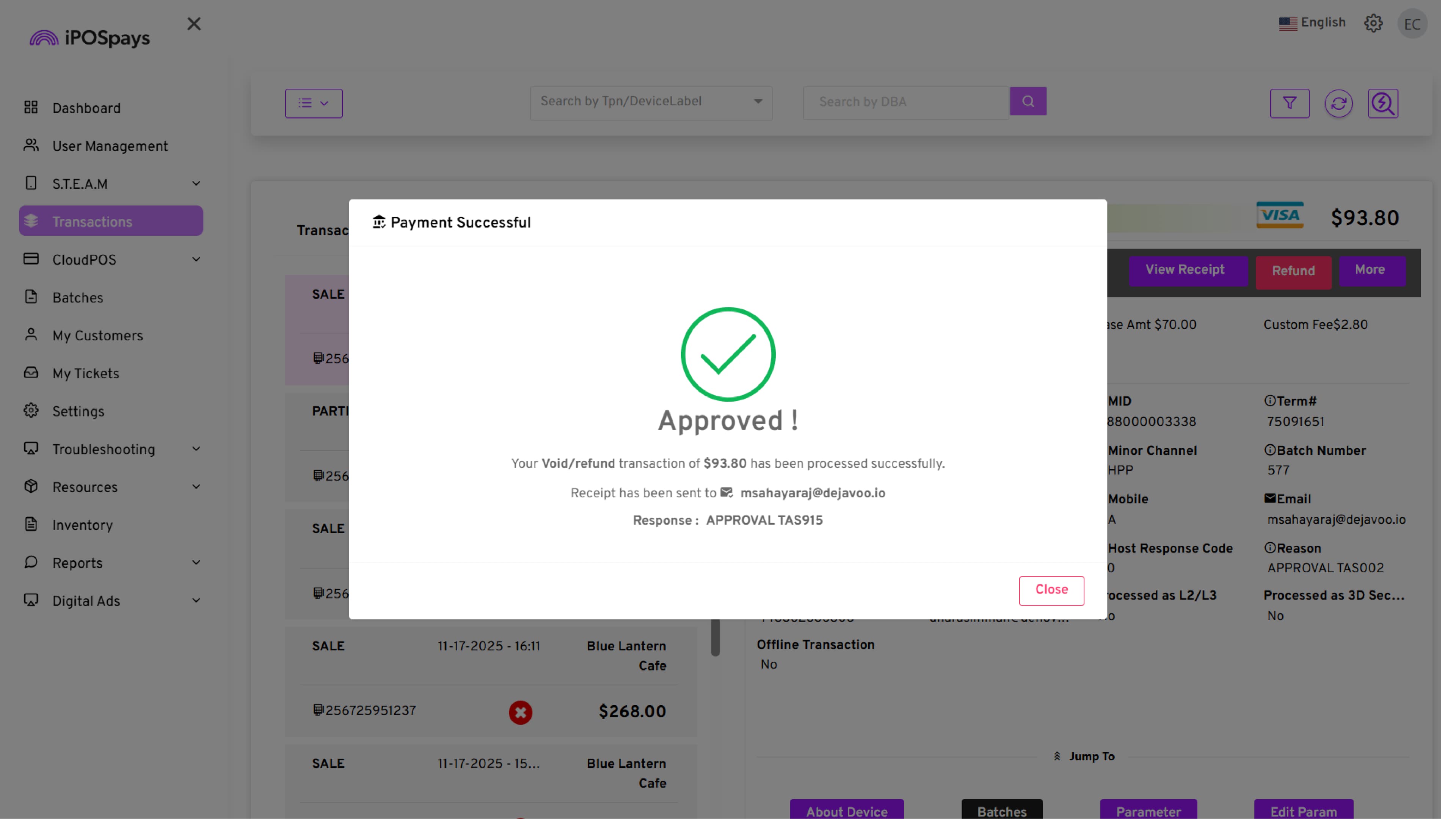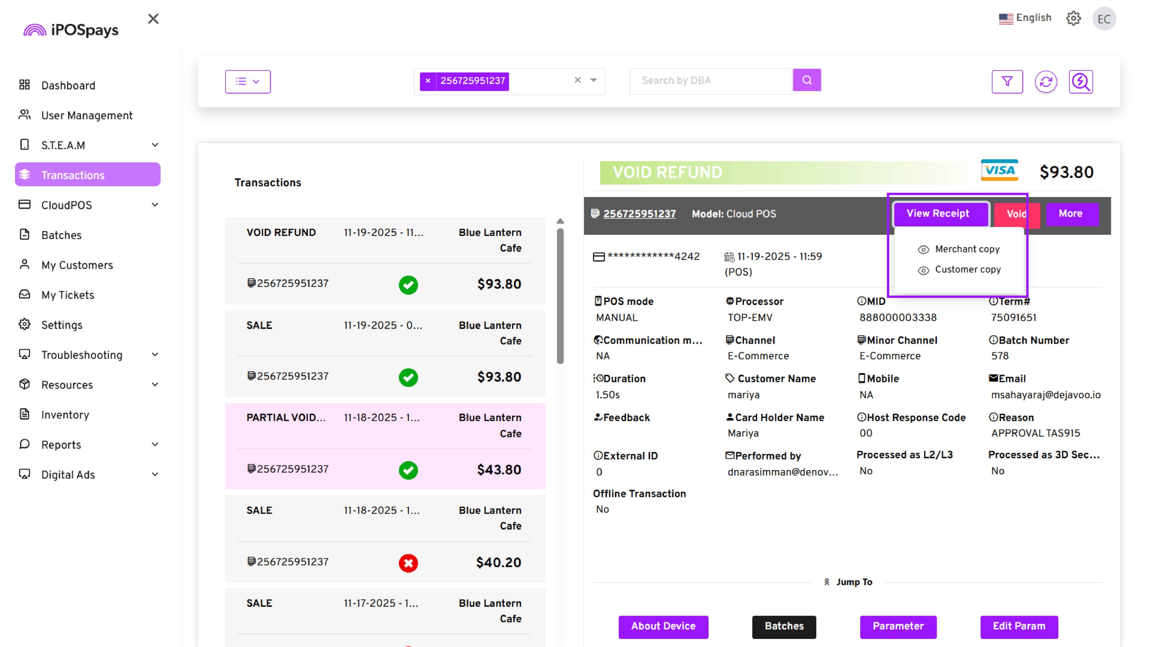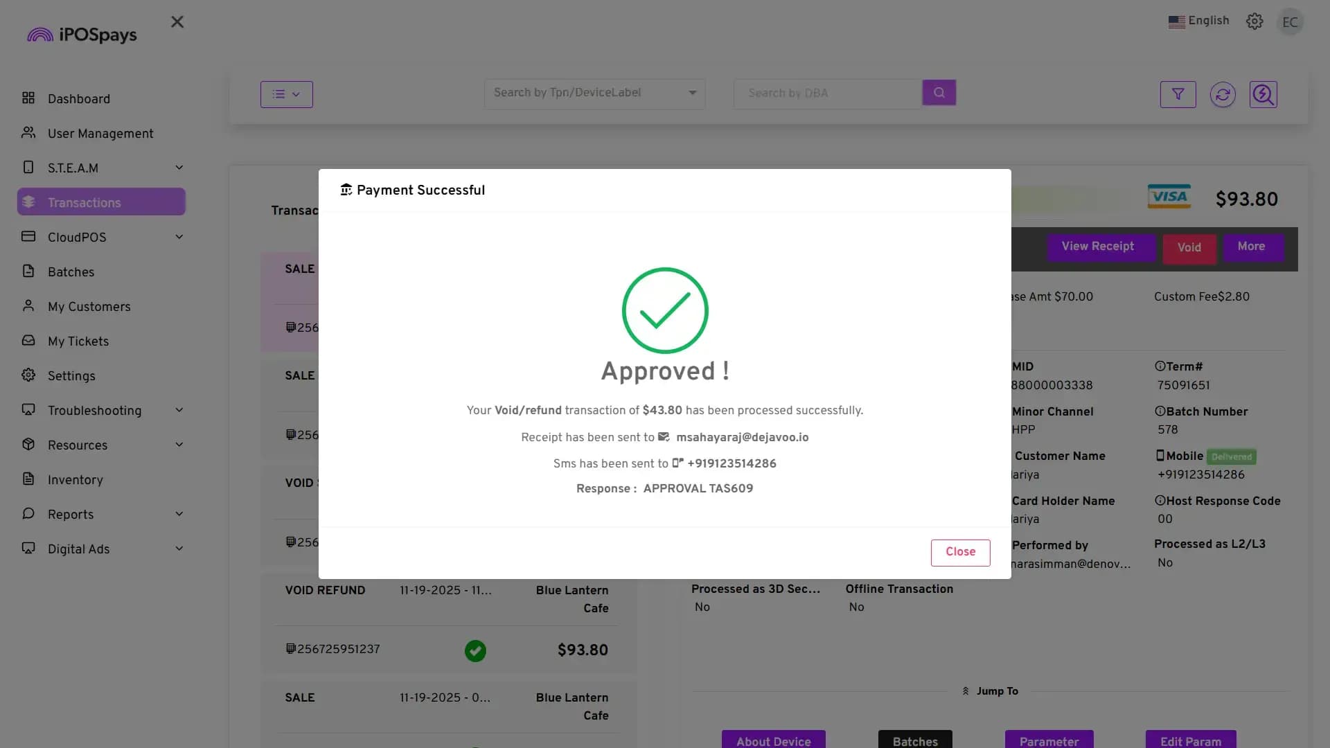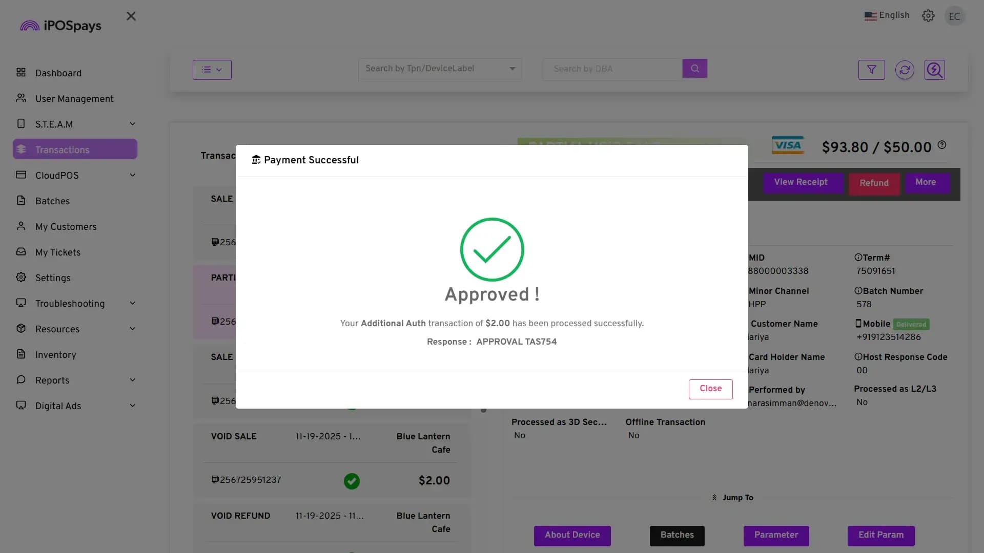Supported Platform: iPOSpays Portal (Merchant Account)