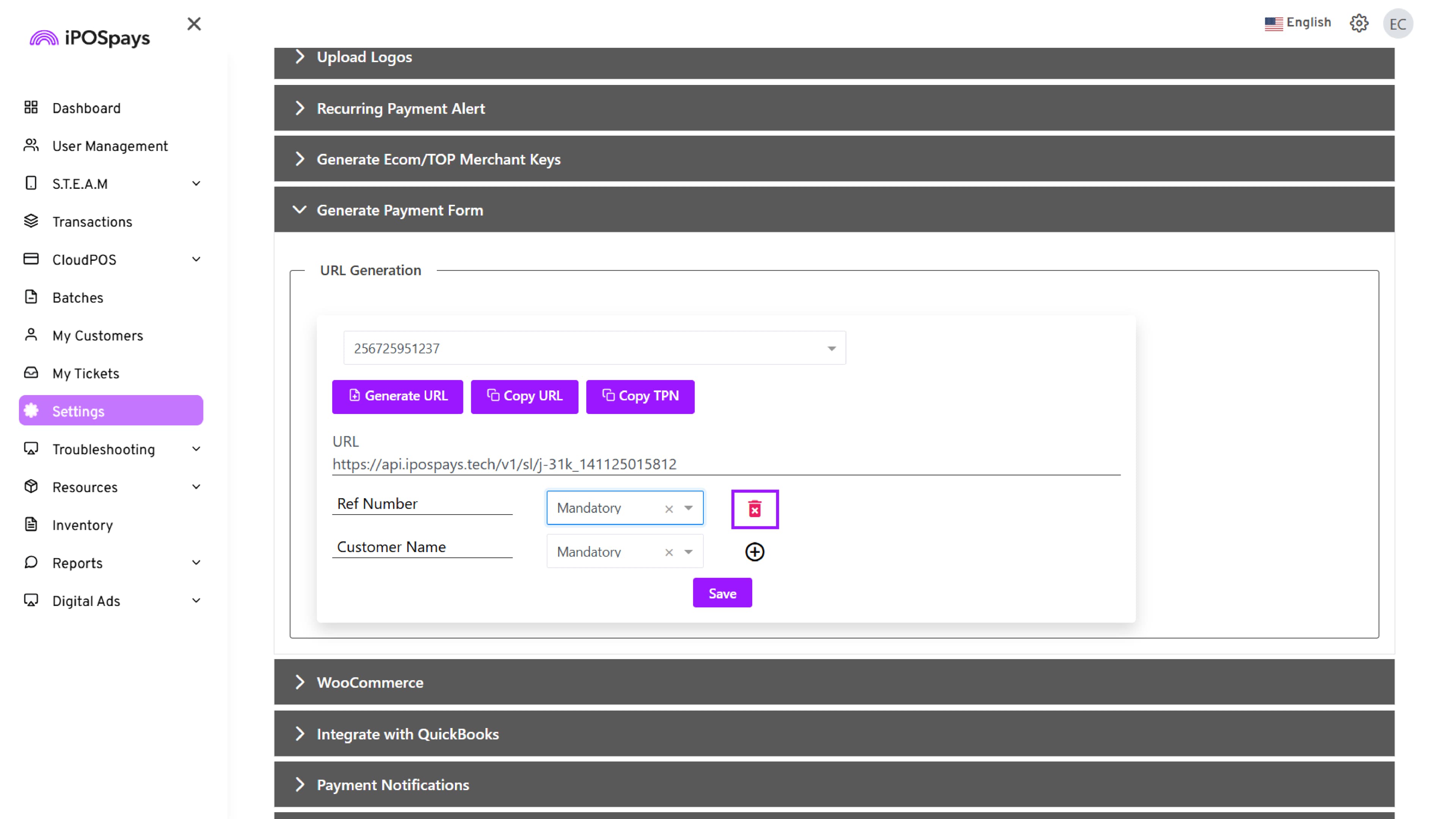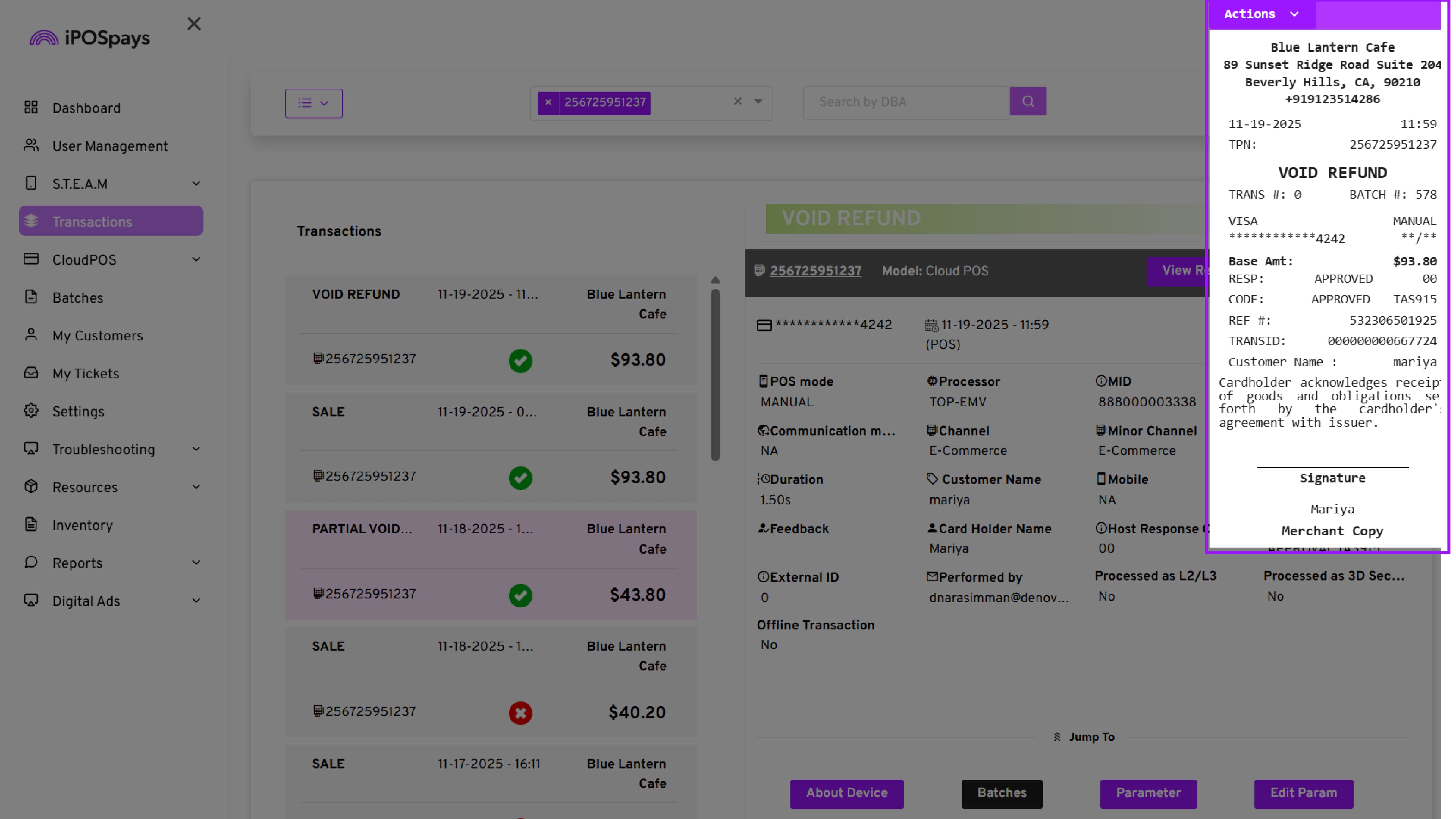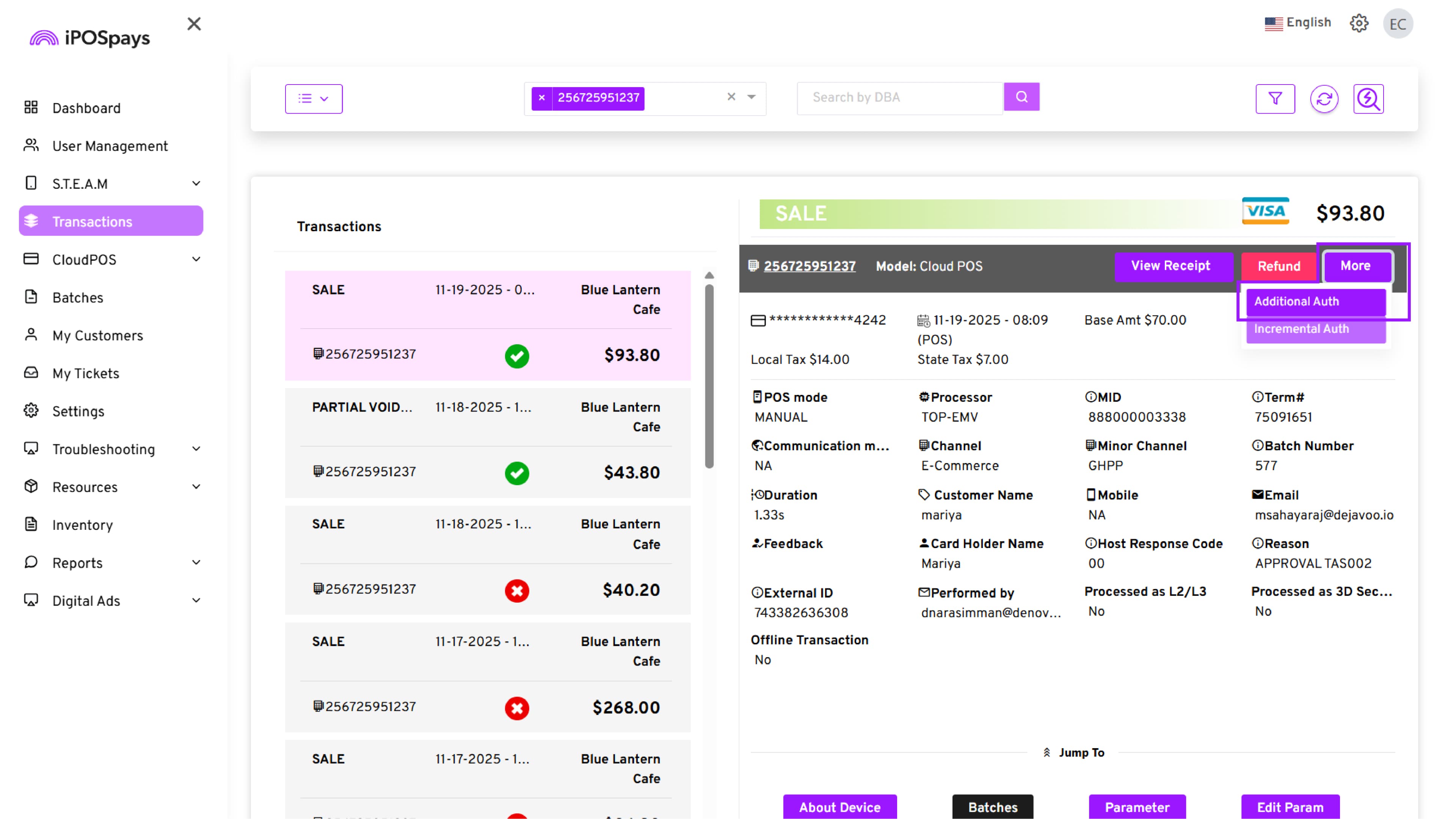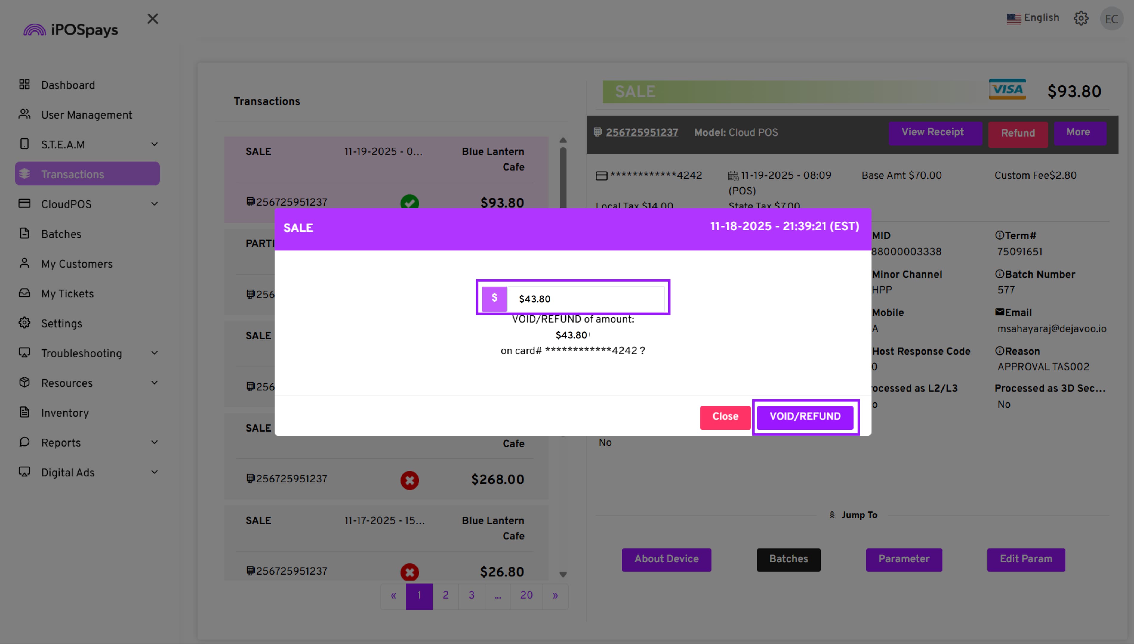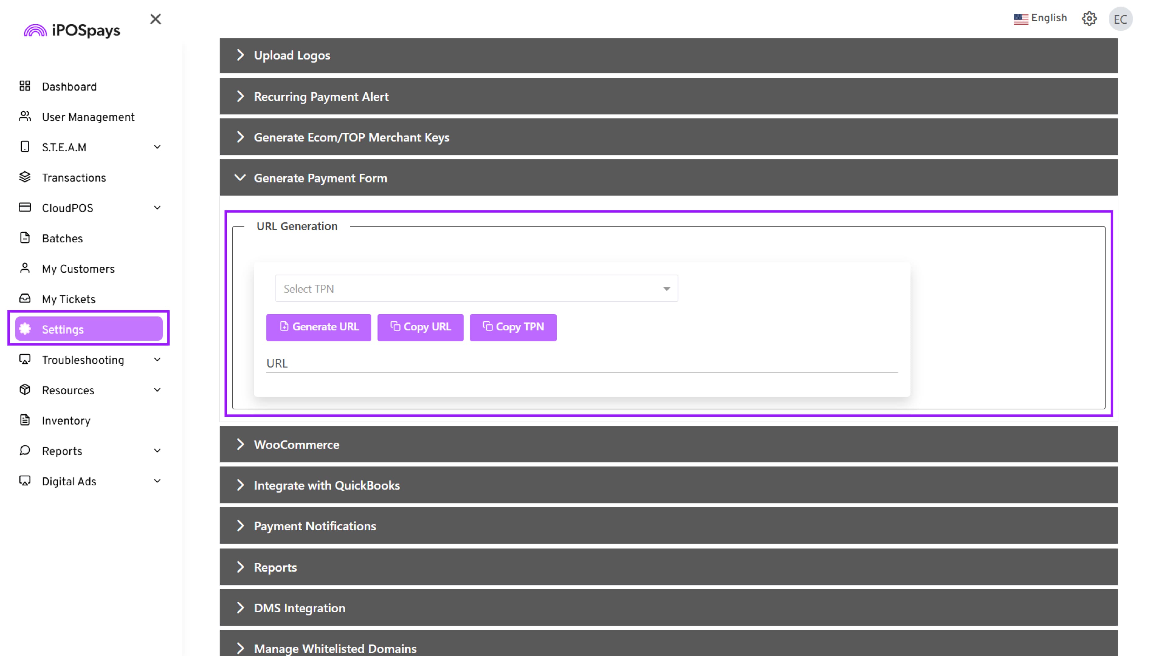 Supported Platform: iPOSpays Portal (Merchant Account)