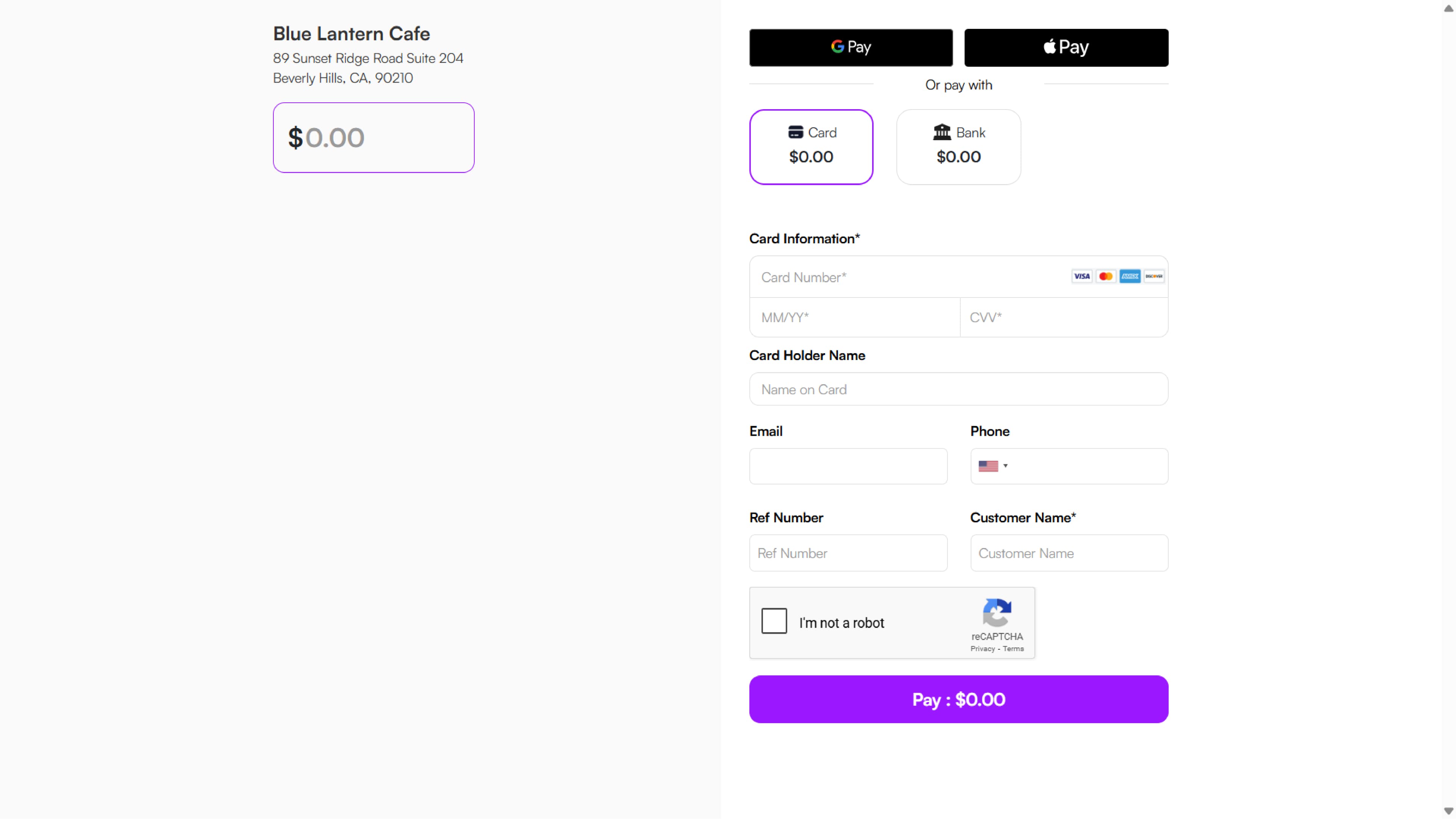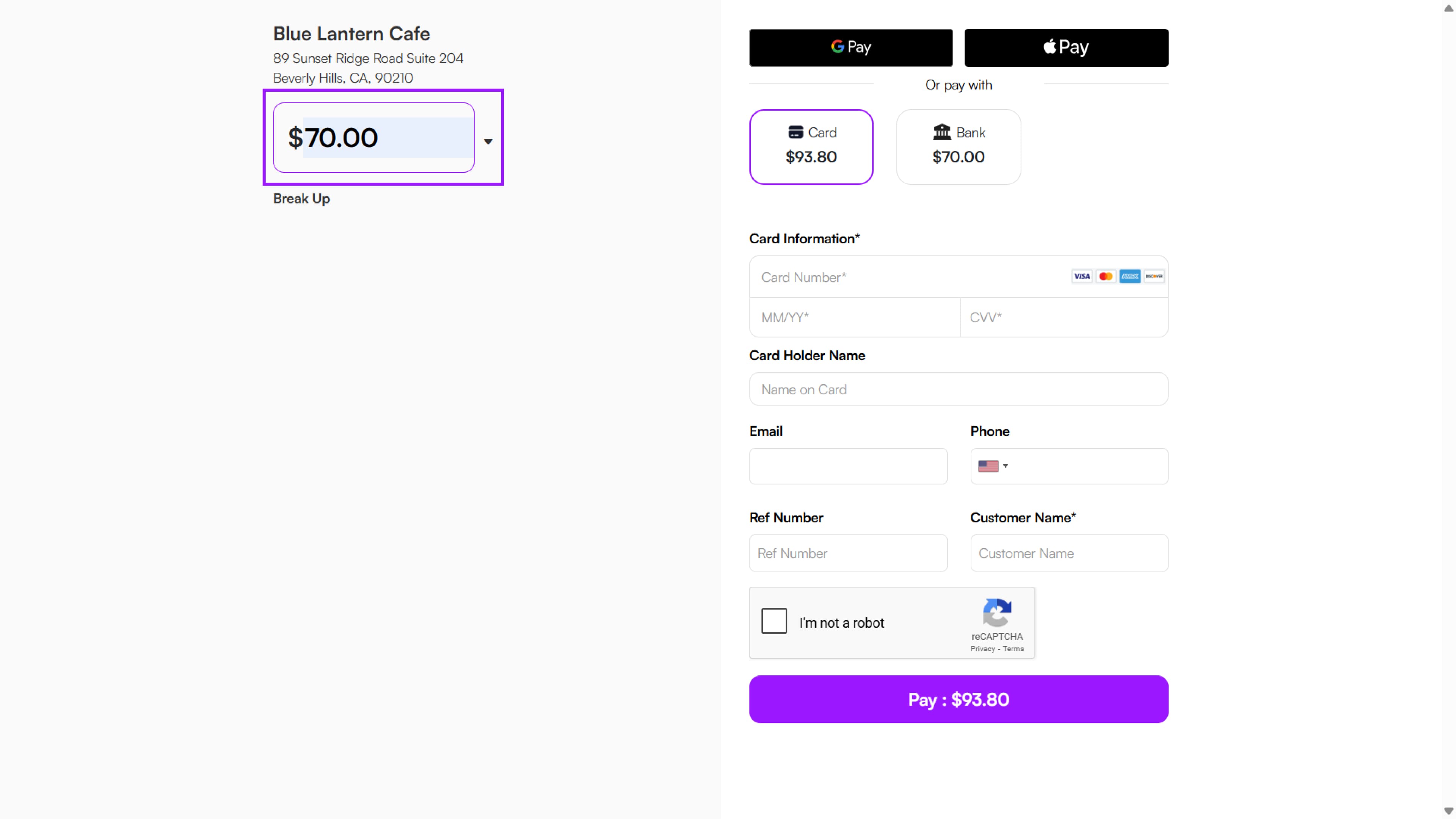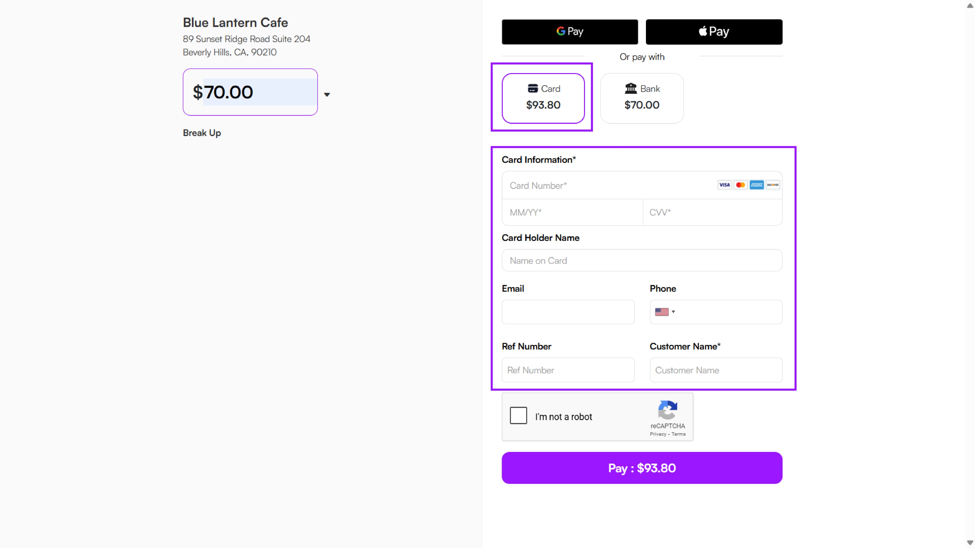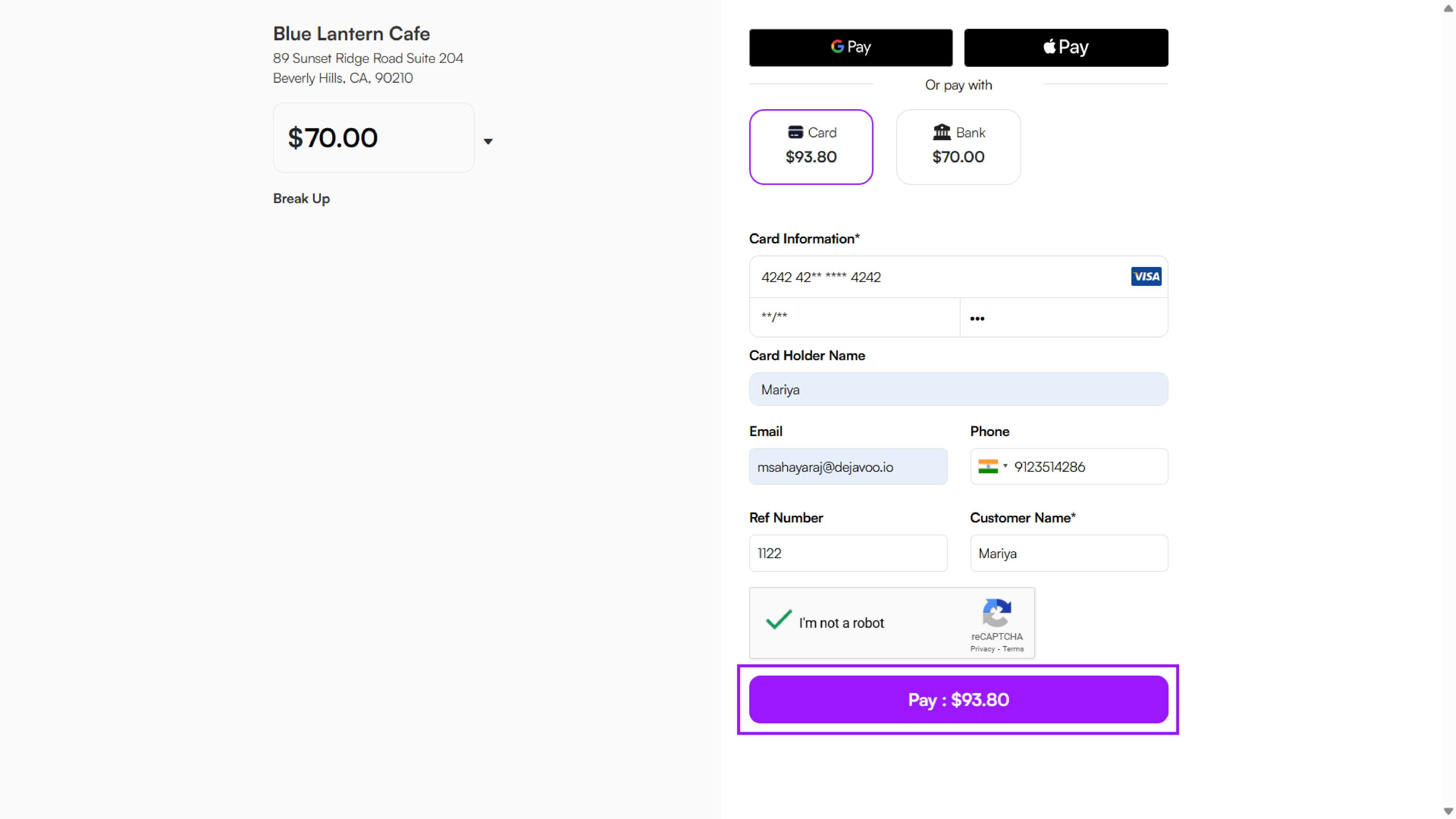 - Once all the details are filled in, the customer clicks Pay.