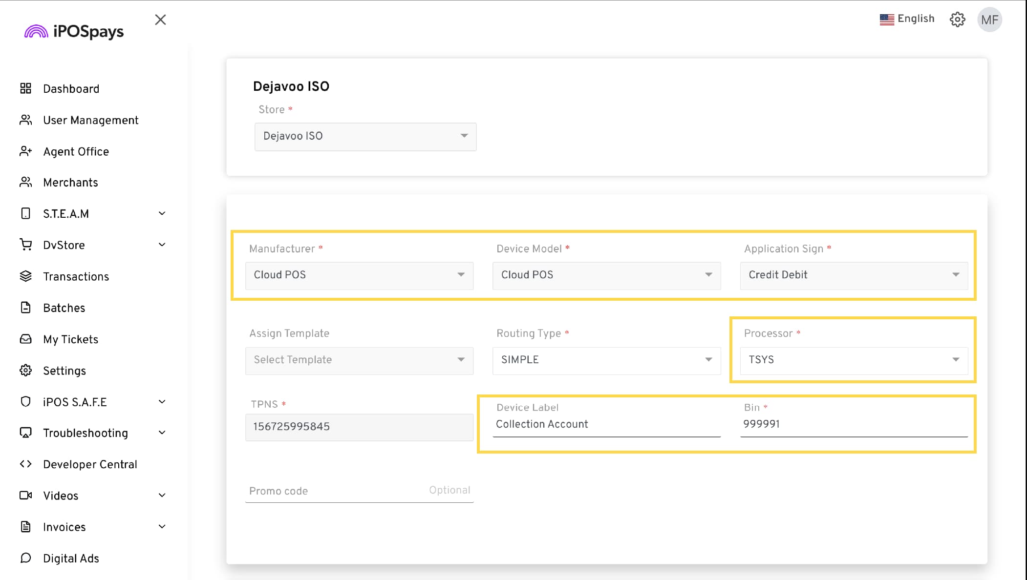 Log in to your iPOSpays account using ISO credentials.