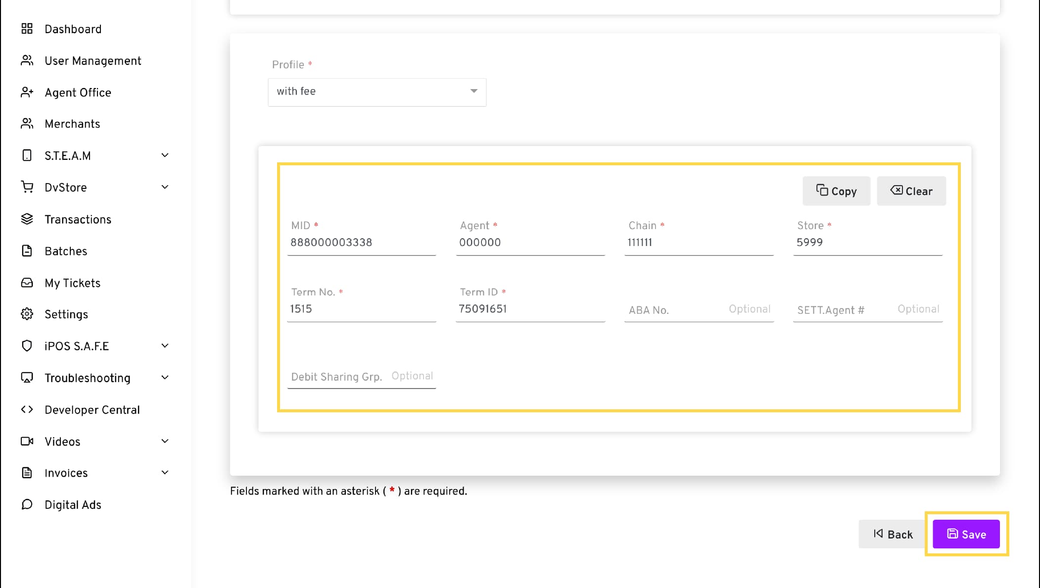 Configure the With Fee or Without Fee profile based on your merchant’s account configuration, using the VAR Sheet.