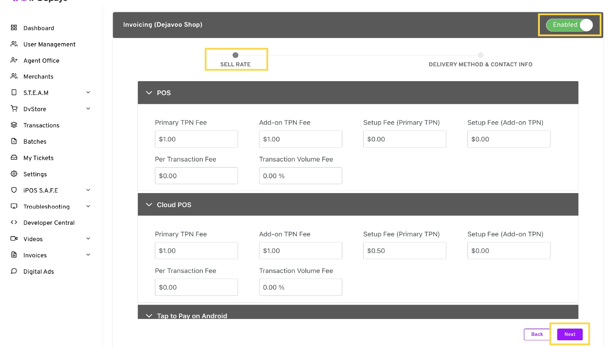 You can enable/disable merchant invoicing for some of your merchants by following the steps below.