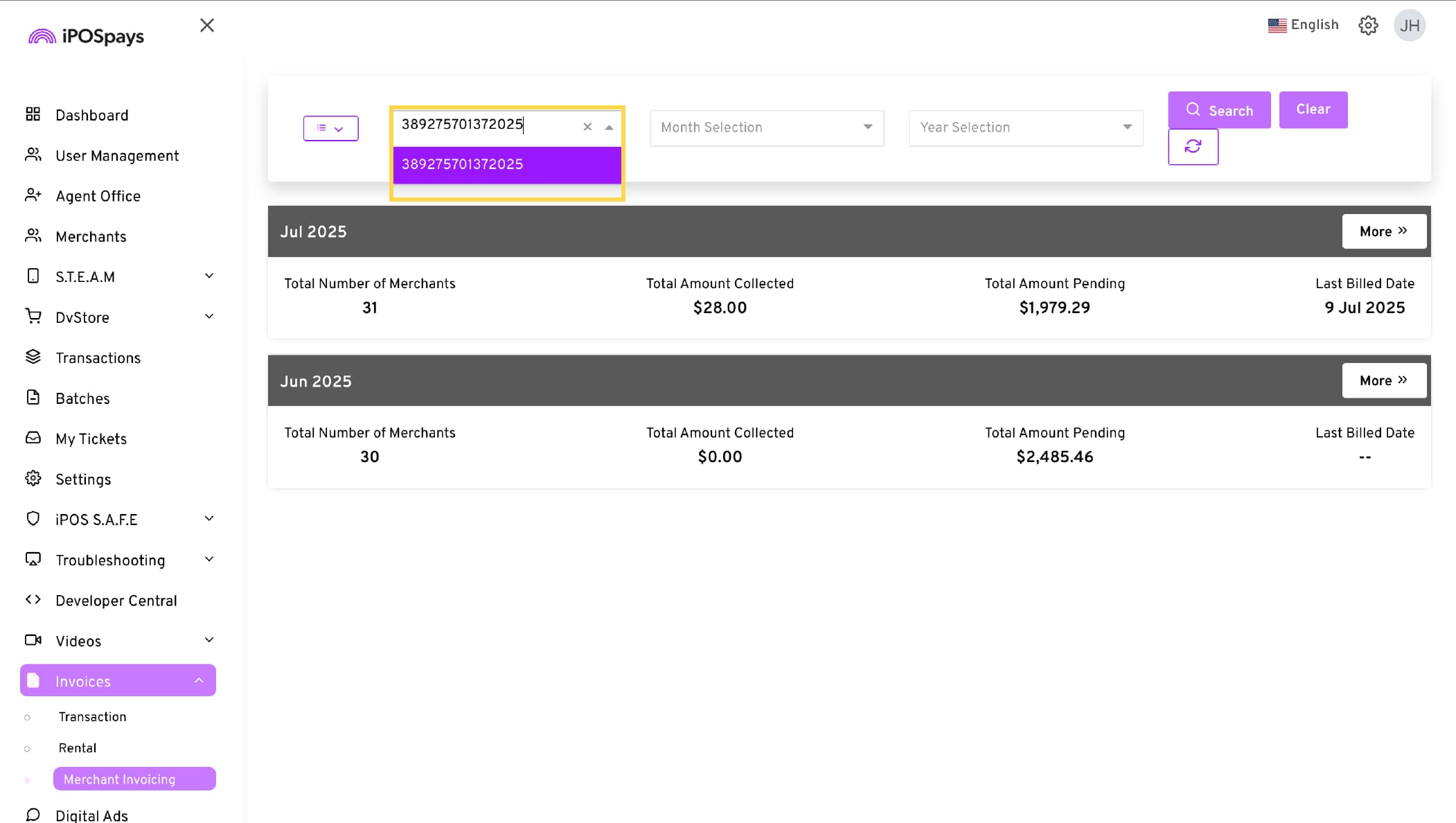 Search by Merchant: To find the invoice belonging to a specific merchant