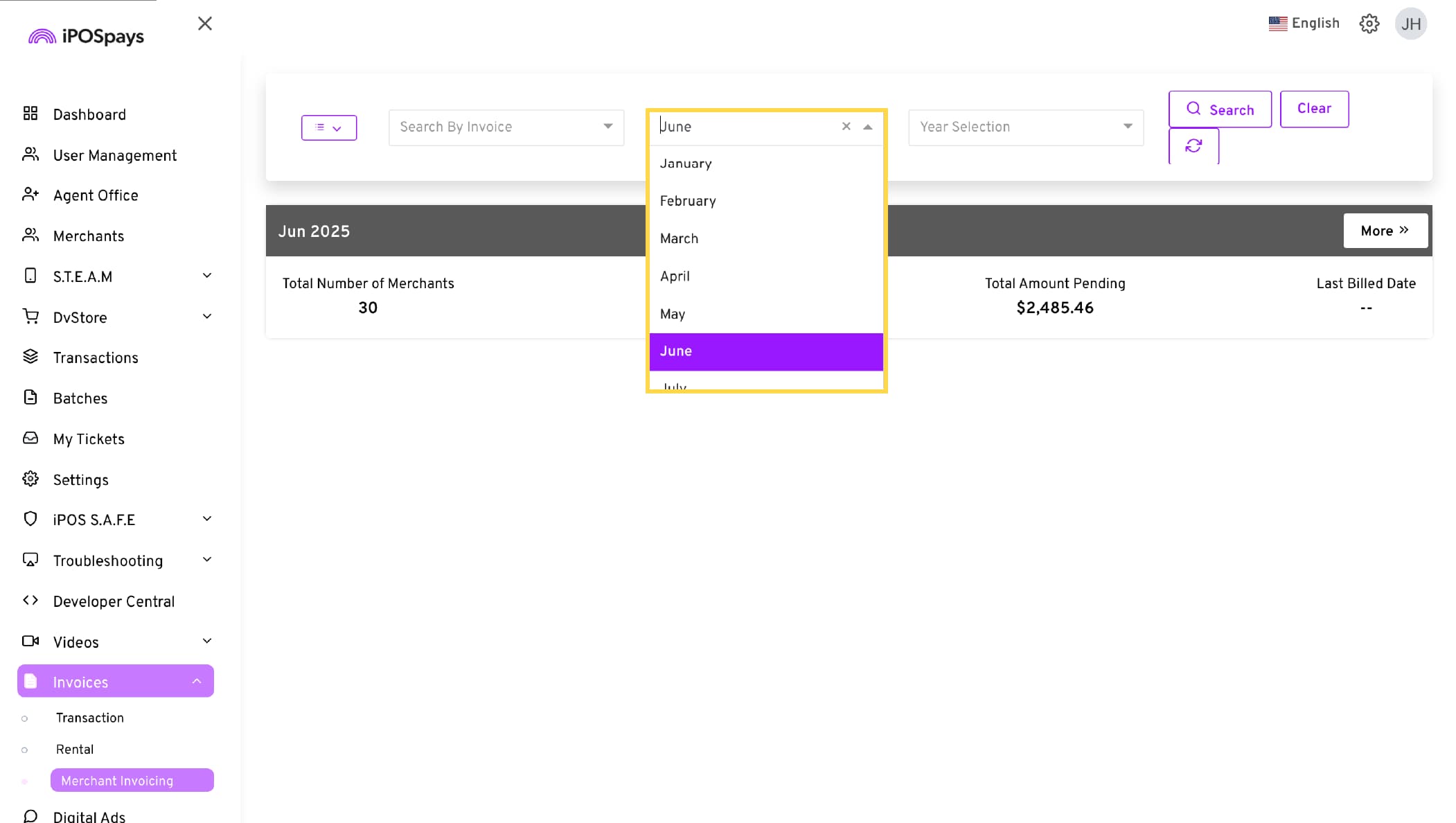 Navigate to Invoices → Merchant Invoicing.