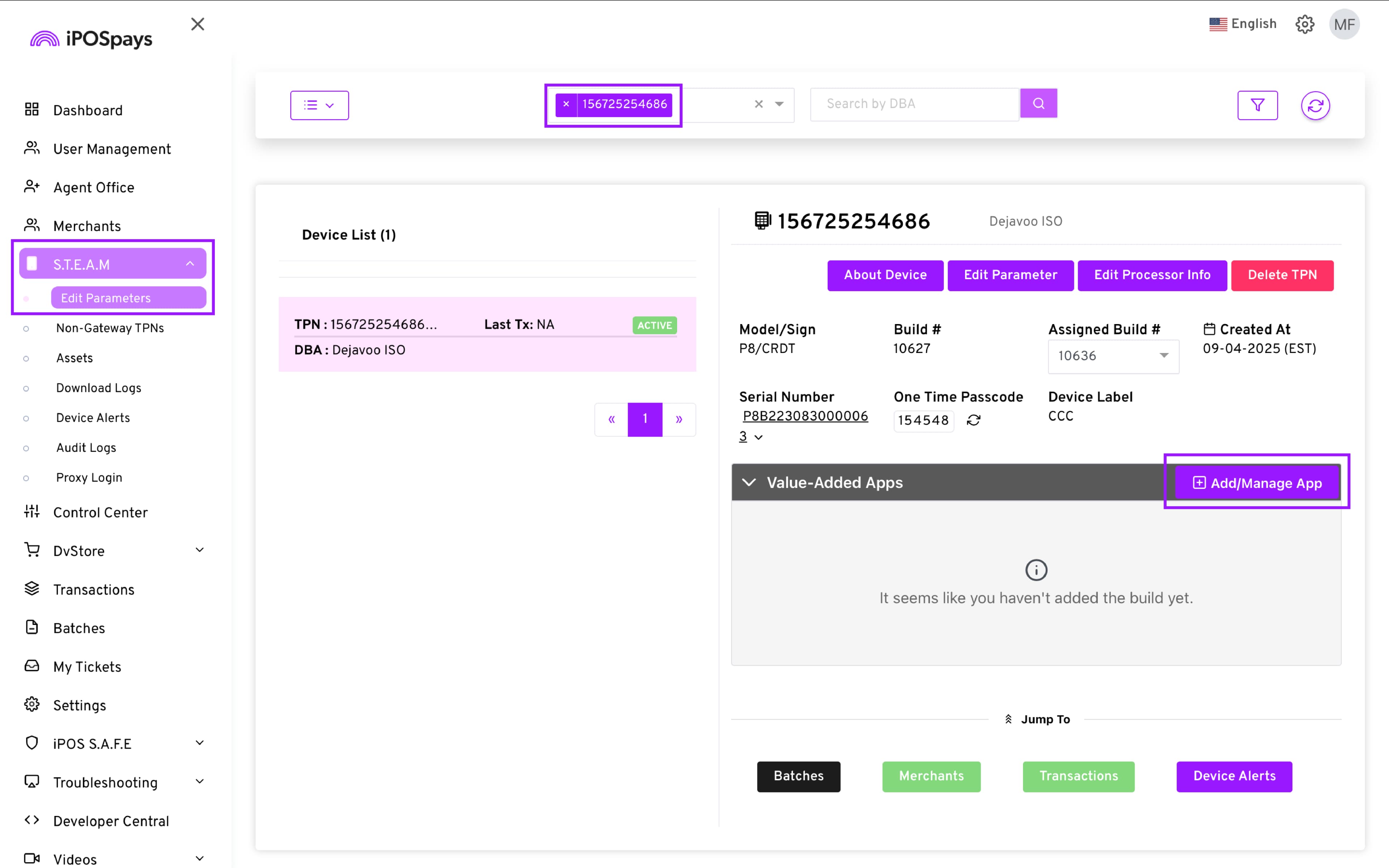 Contact your Dejavoo executive to have the third-party application added to your ISO account.