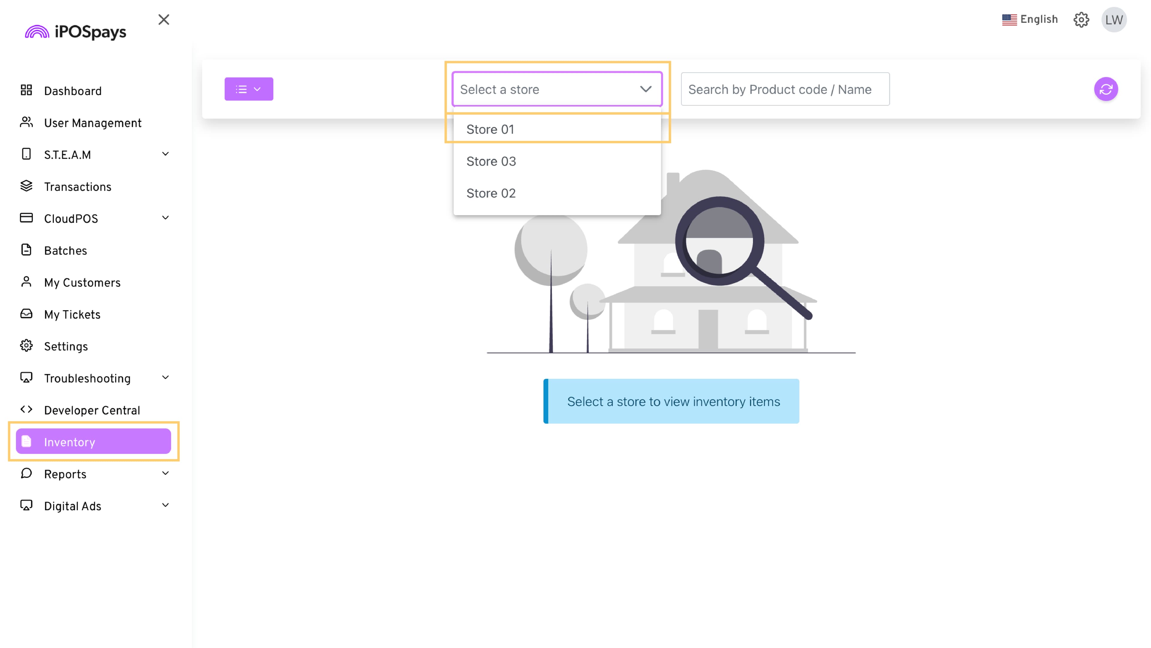 Select your store from the drop-down (if multiple stores are present)