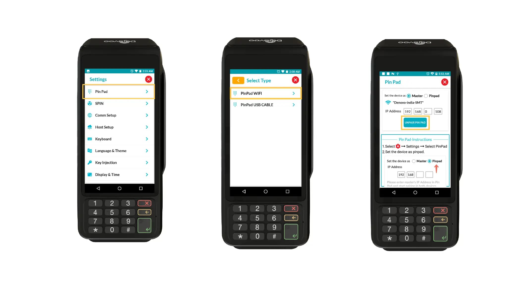 - For USB: Select Pin Pad → PinPad USB Cable → UNPAIR PIN PAD.