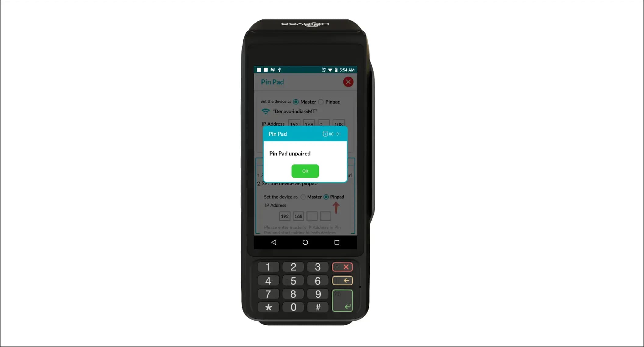 - If you select Unpair PINpad, the P1 will be set up as a standalone terminal.
