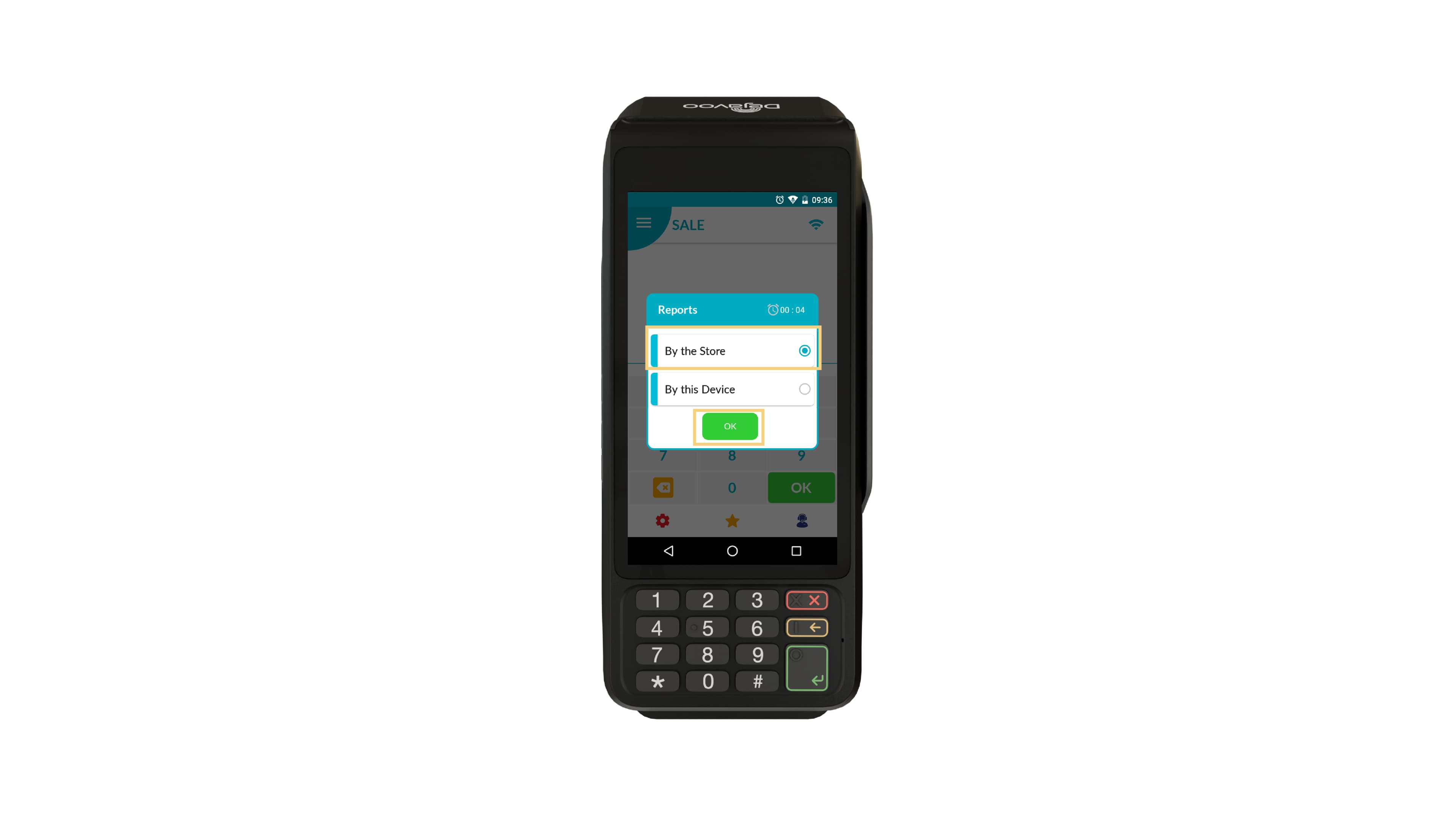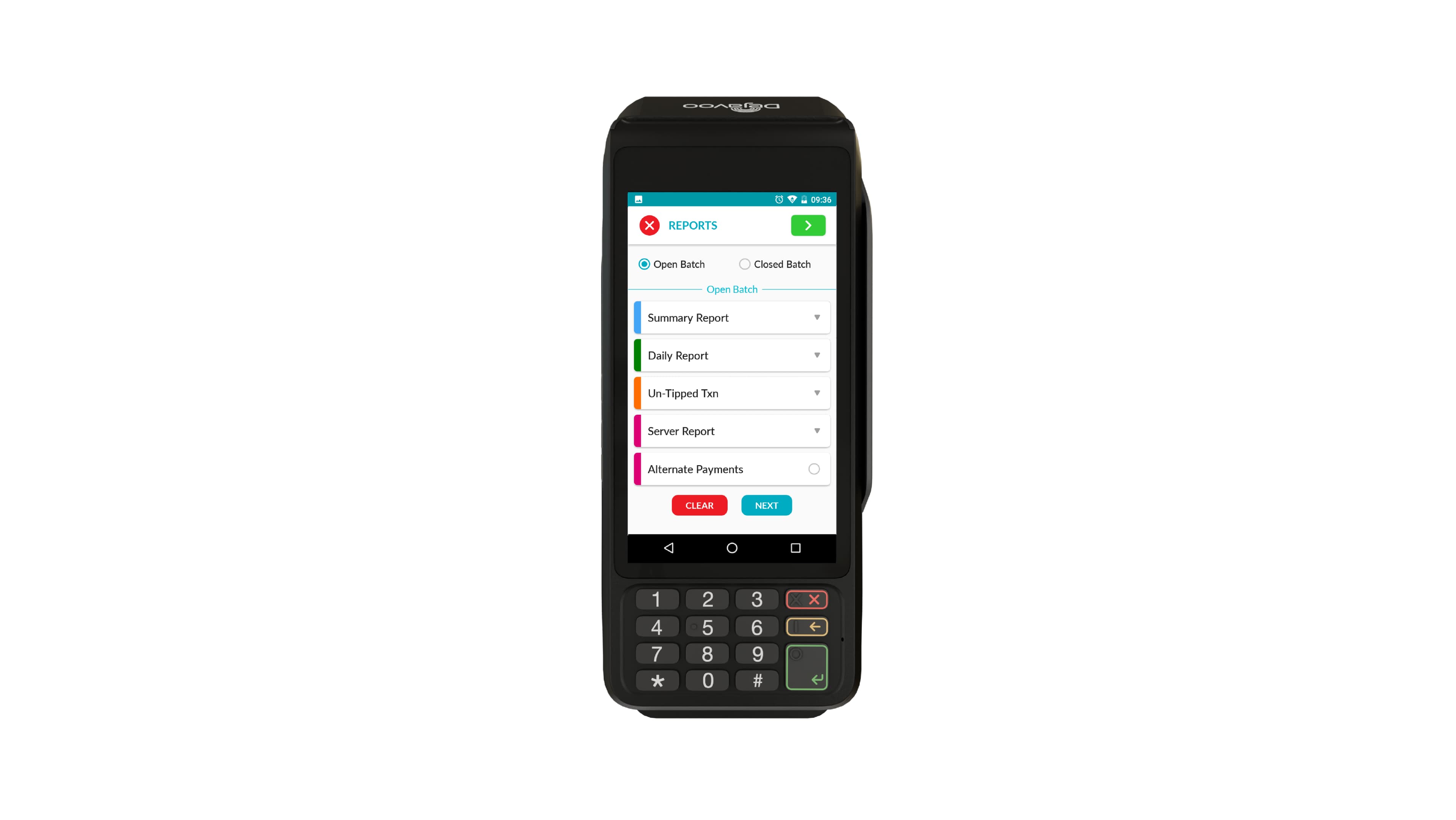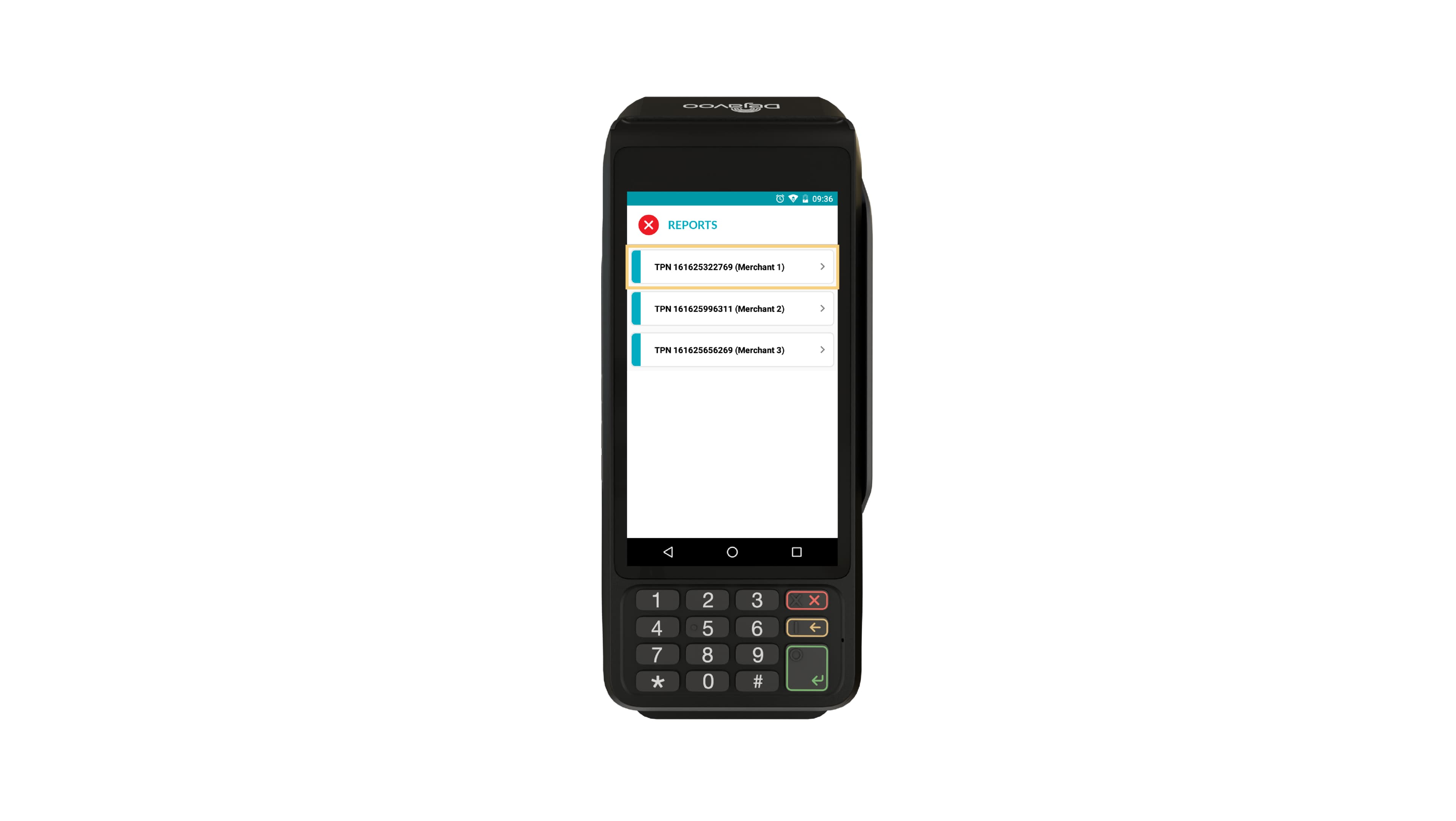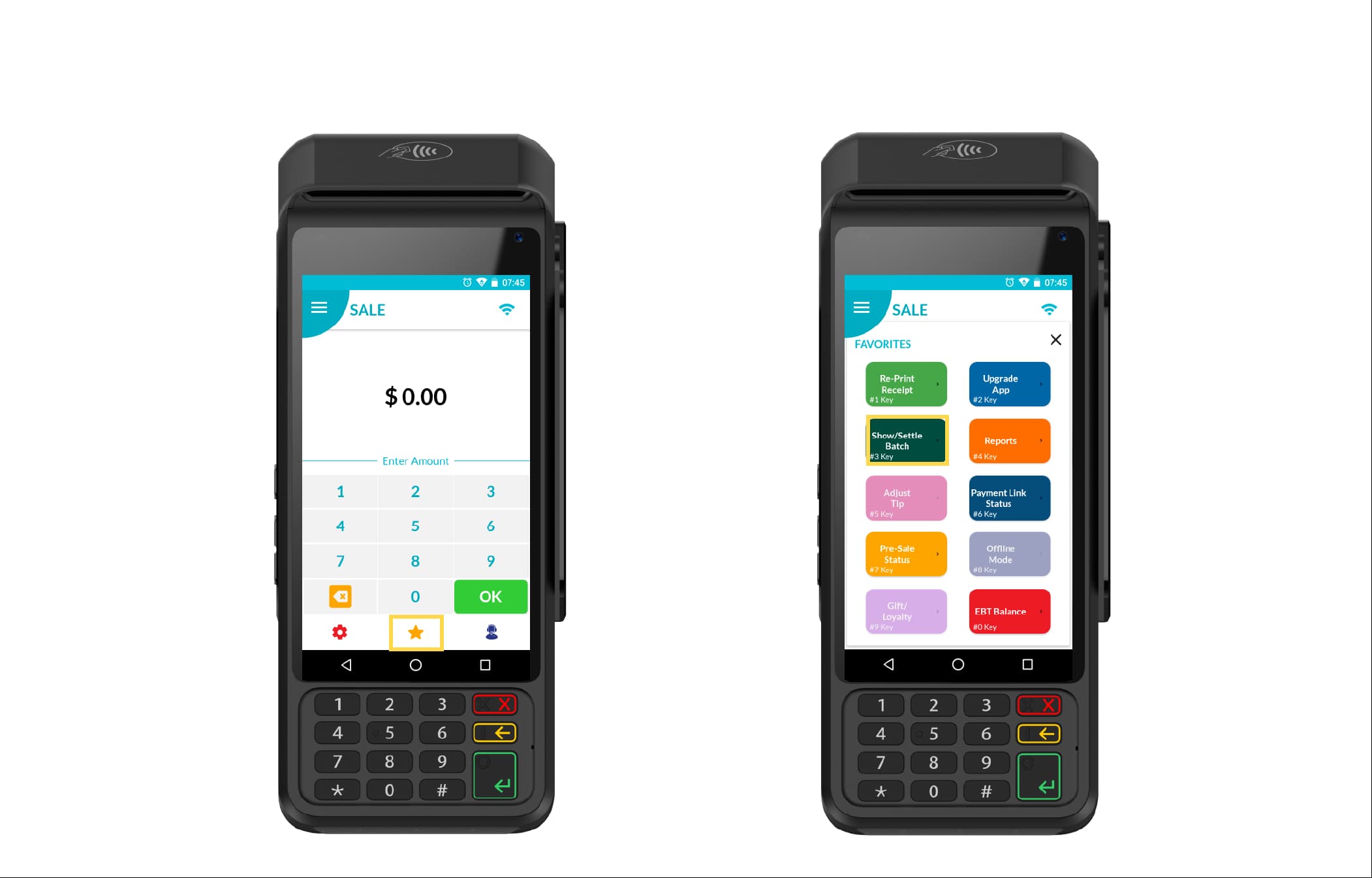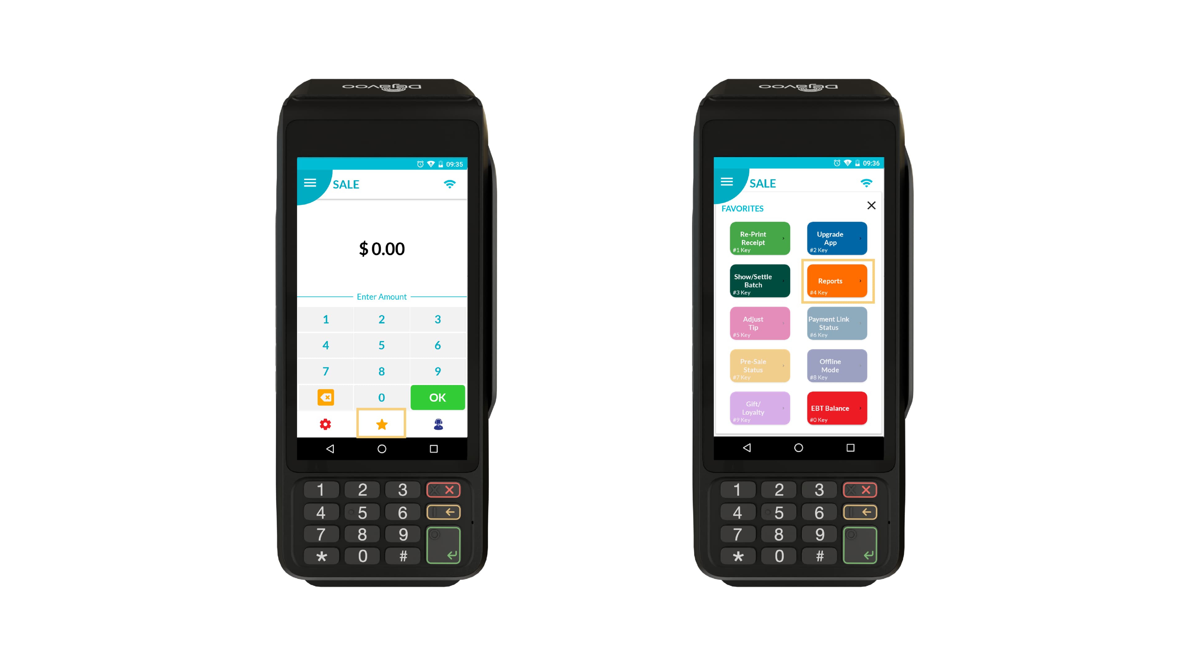 - From the idle payment screen, tap ☆ to access Favorites → Reports.