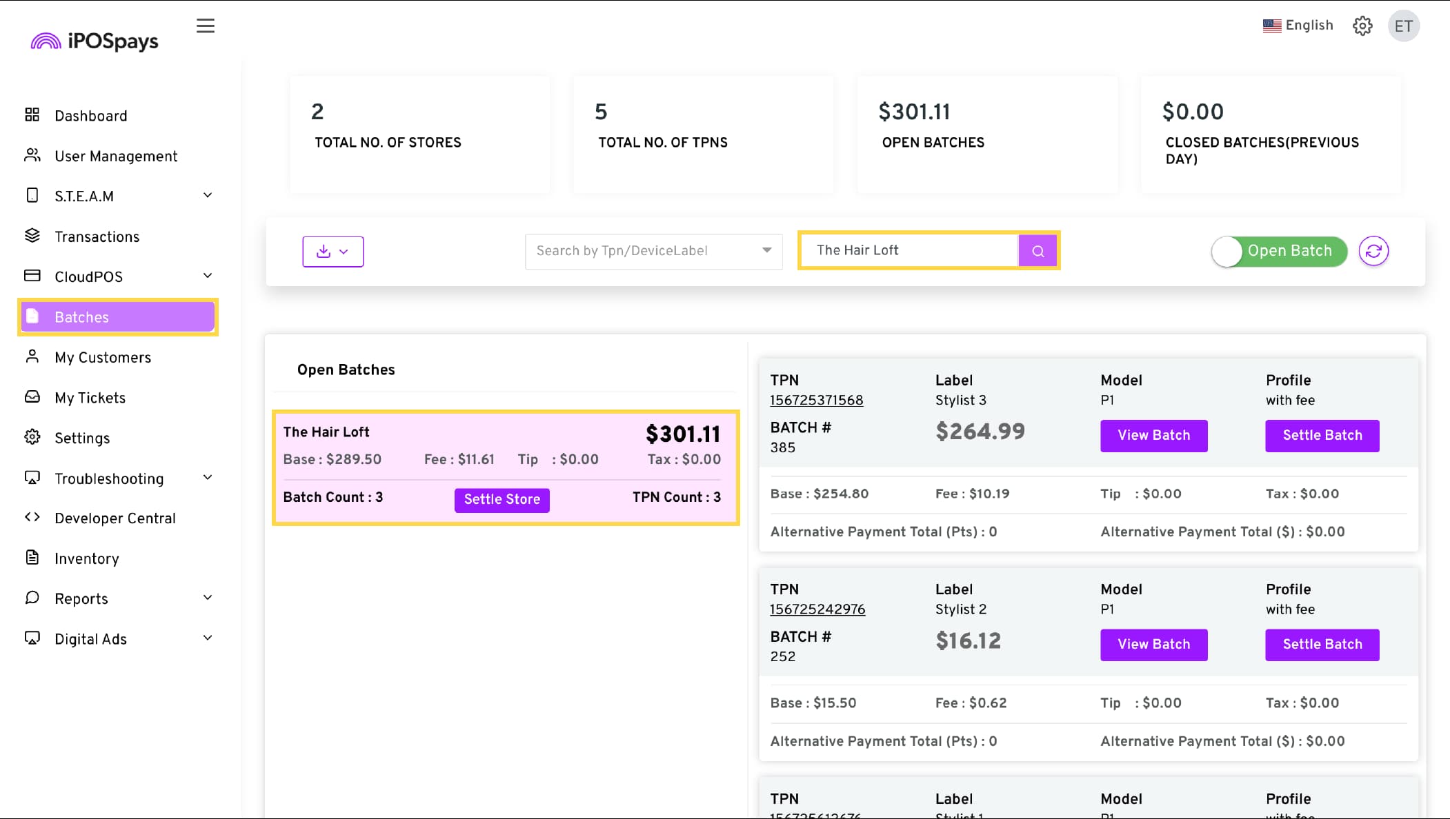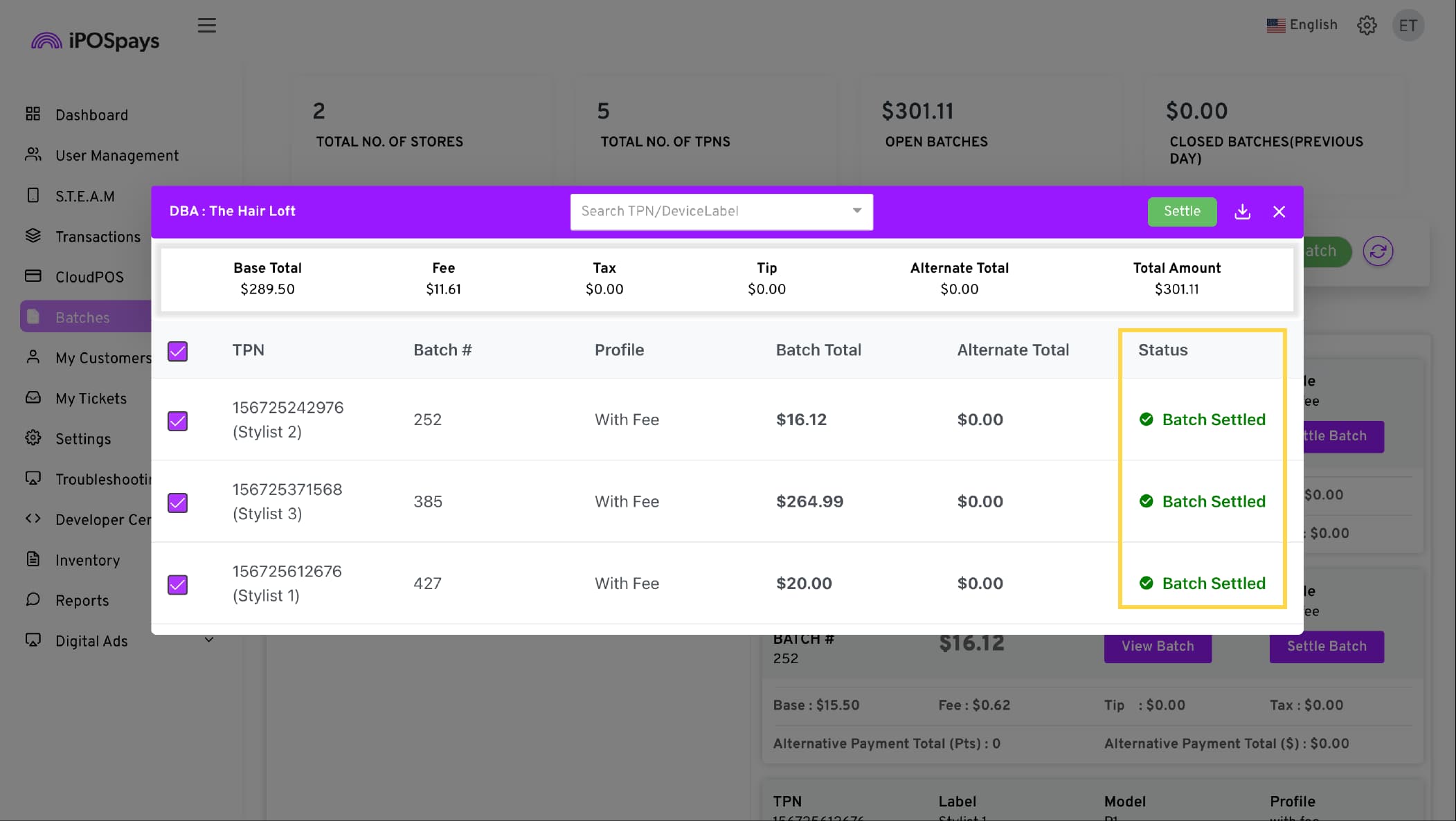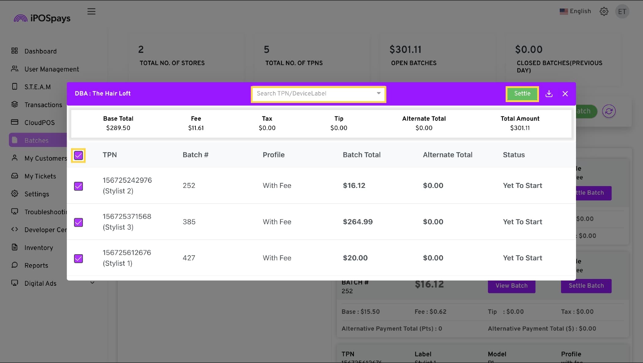 Settle By Store is a powerful feature that enables merchants with multiple TPNs under a single store to settle batches instantly for all TPNs at once or select specific ones to settle. This eliminates the need to manually locate and settle each TPN/device individually, saving time and improving efficiency.
