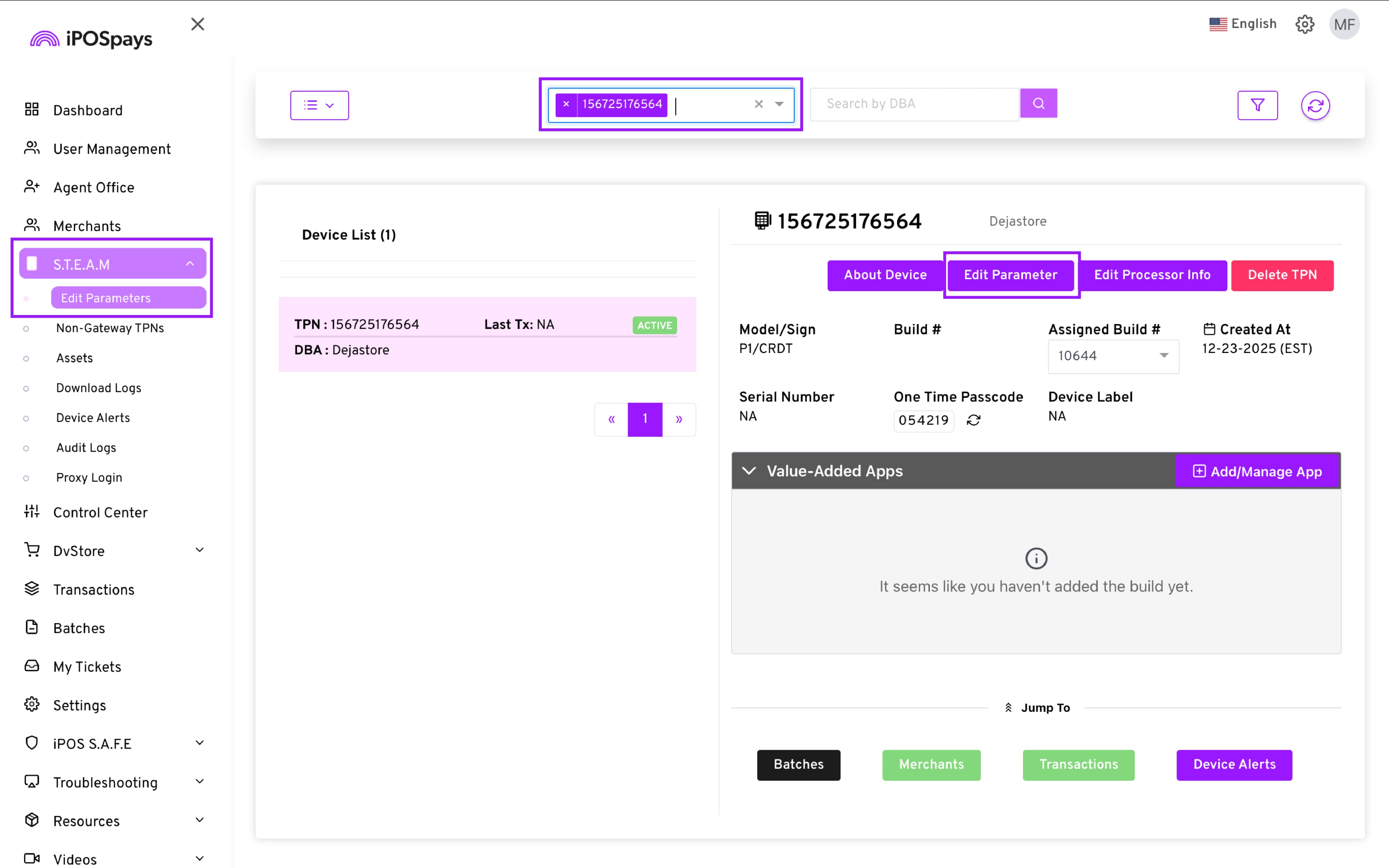 Go to Merchants → Search and select the merchant → Store DBA → Add-On Features.