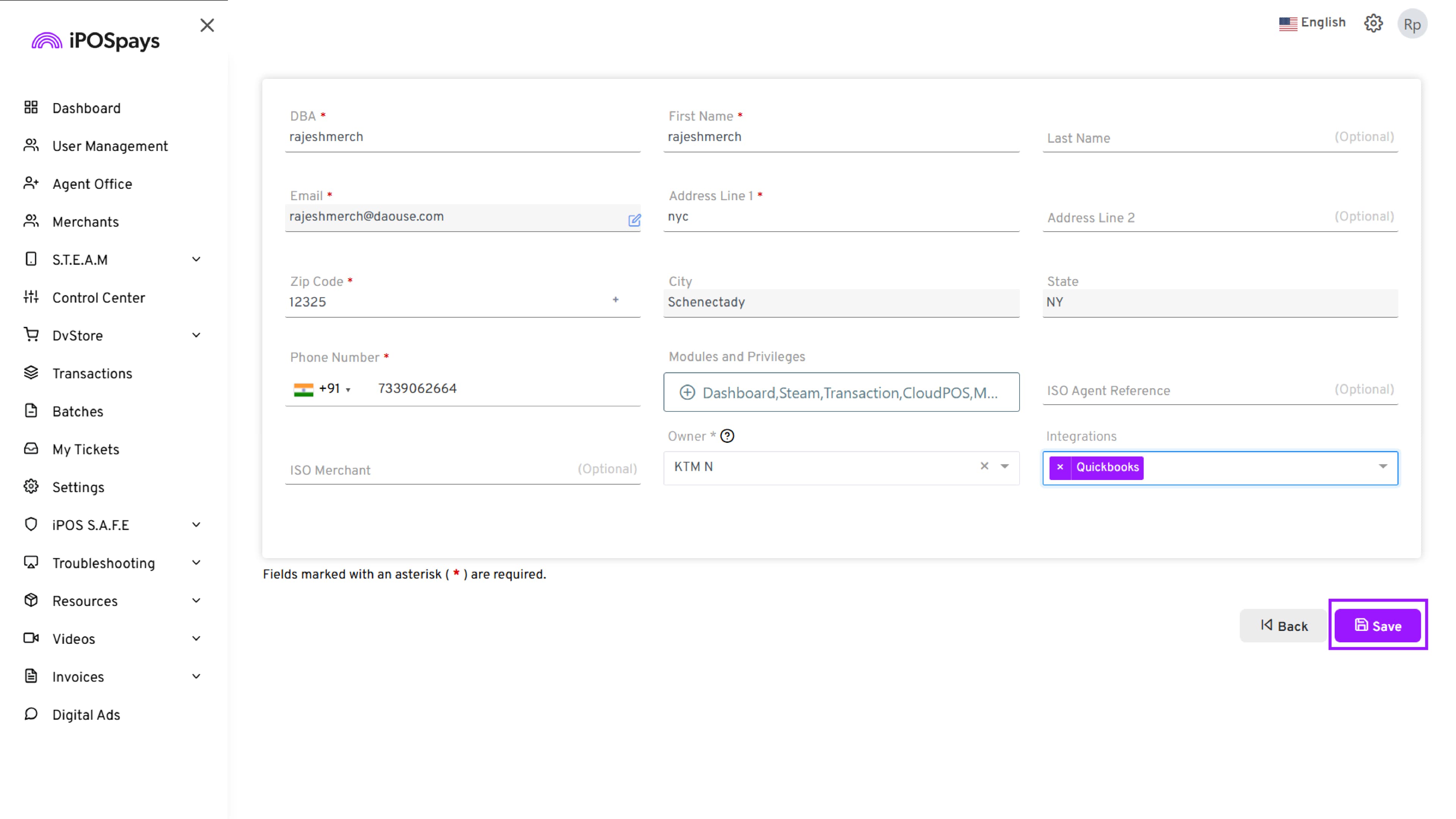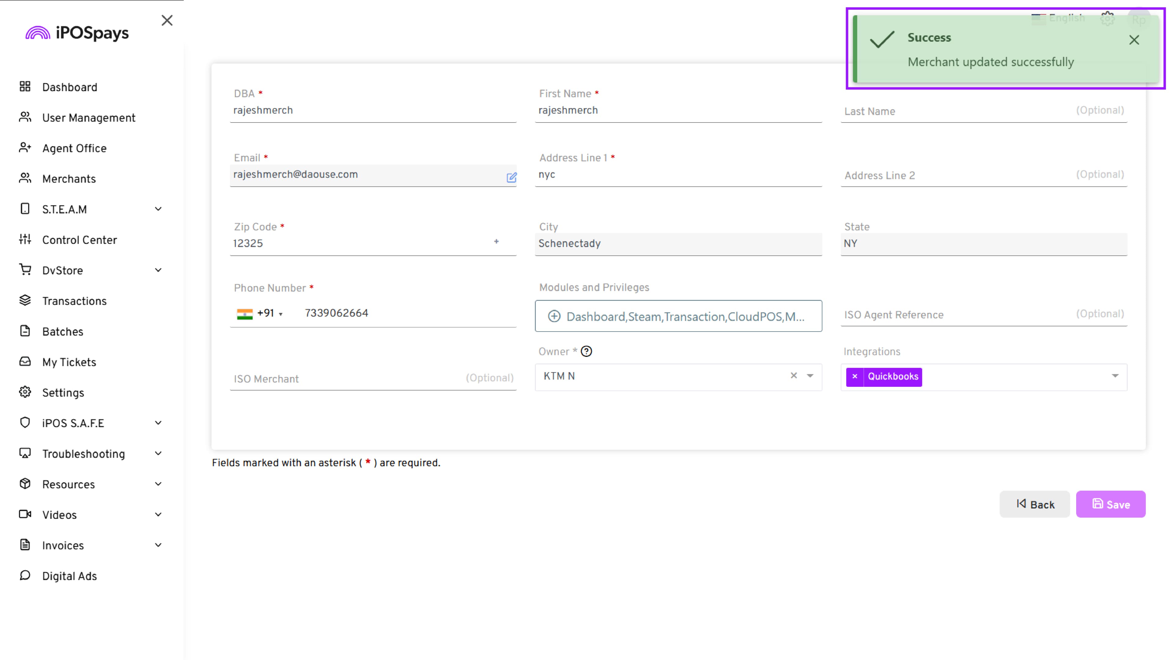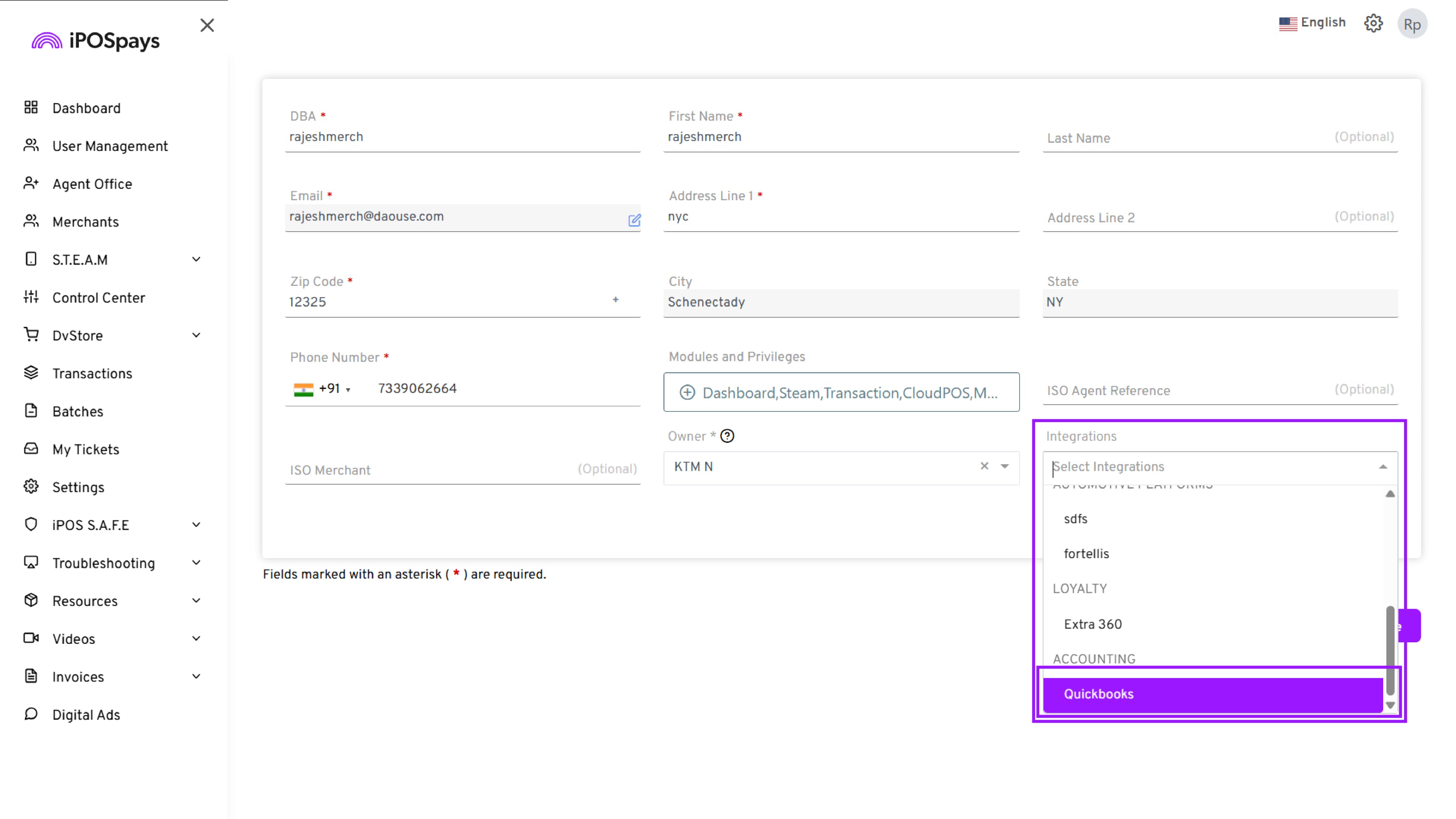 Enabling QuickBooks Integration for a Merchant (ISO)
