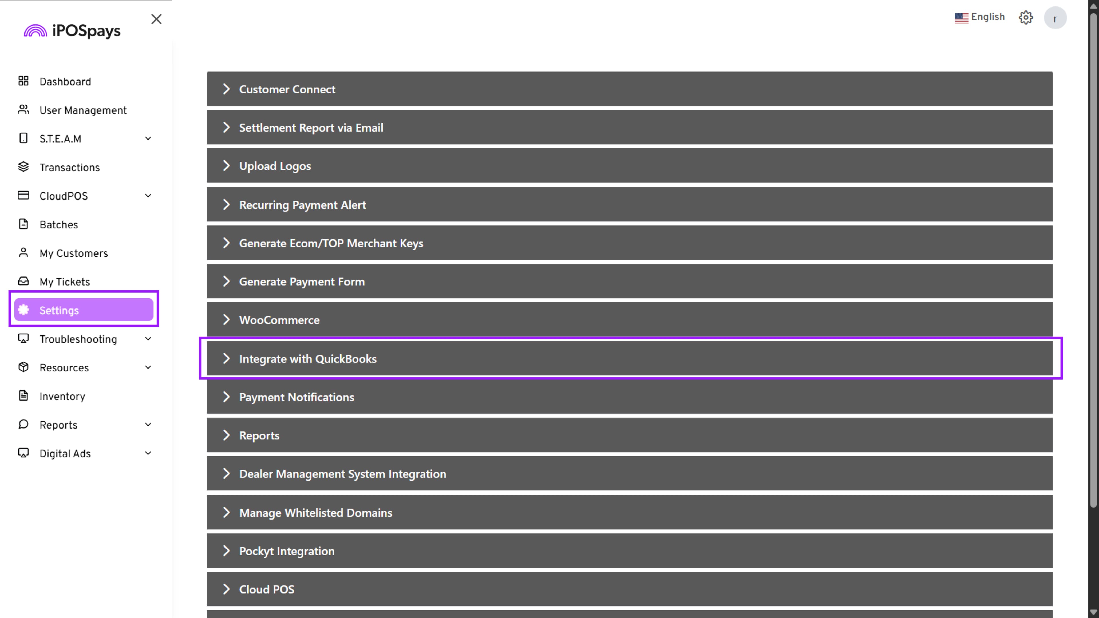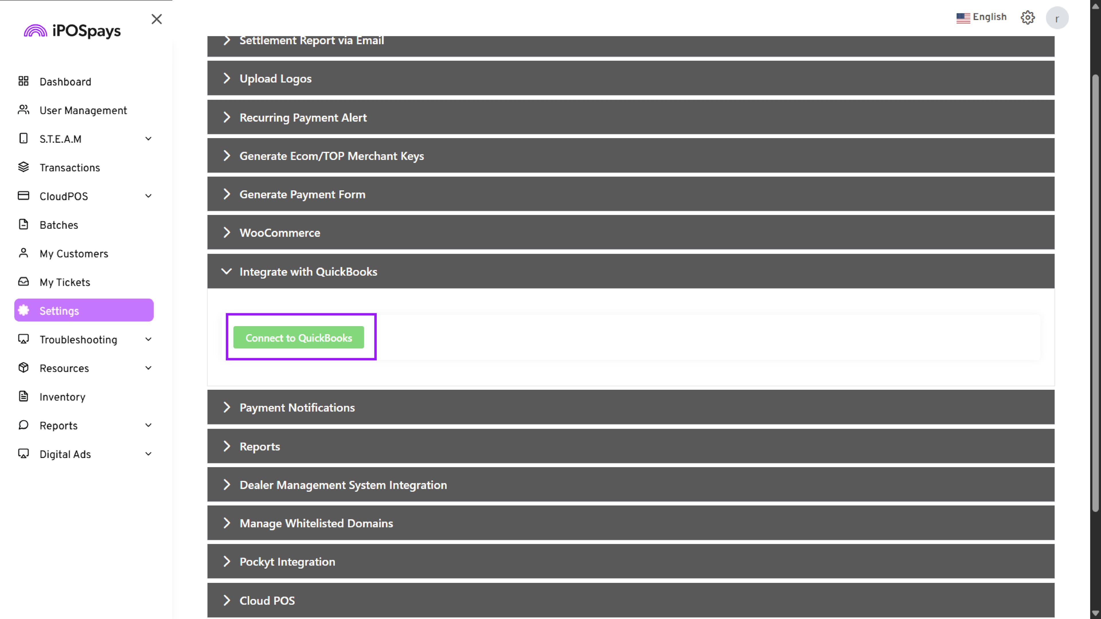 Third Party IntegrationsQuickbooks Integration on iPOSpays