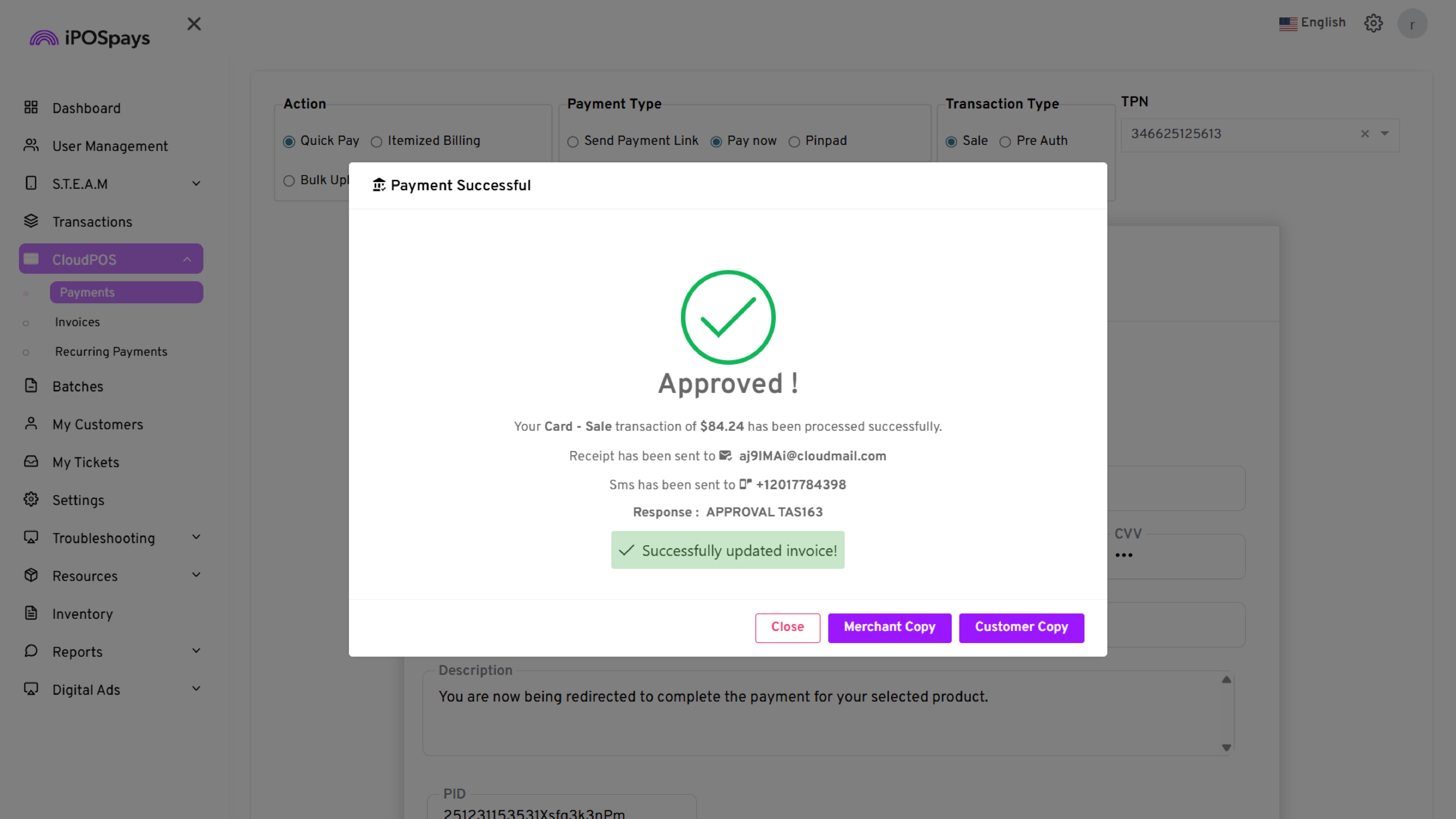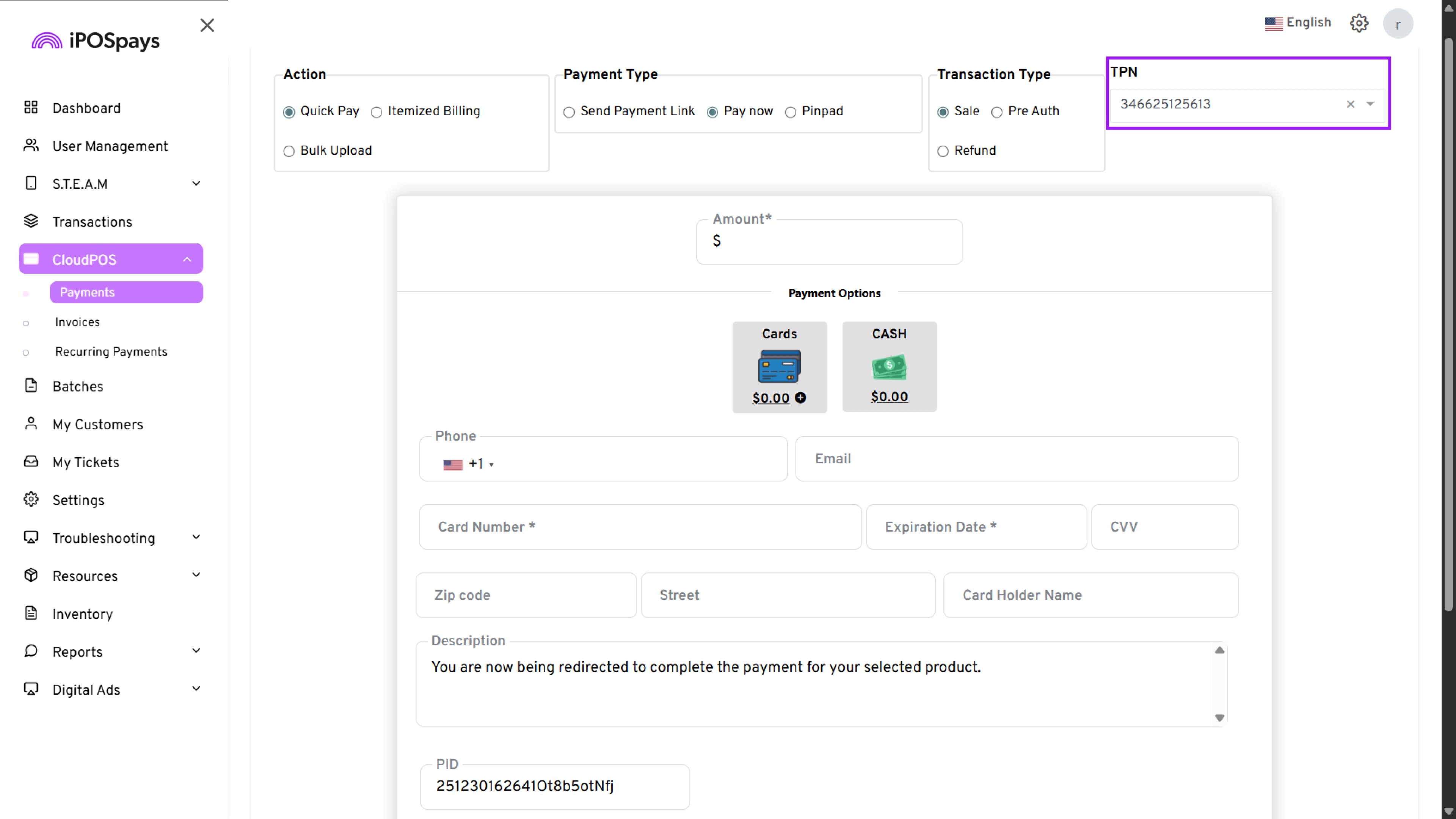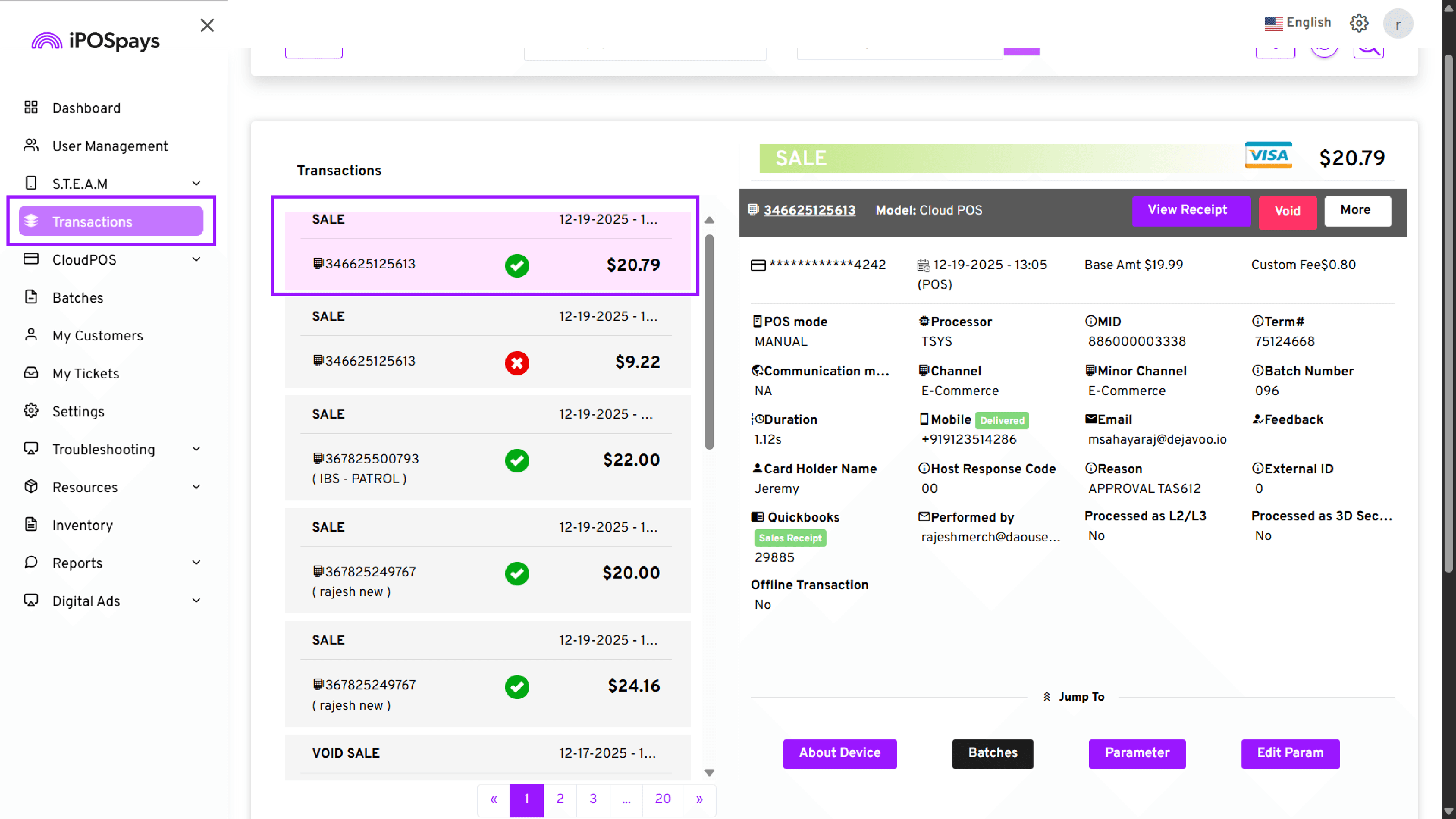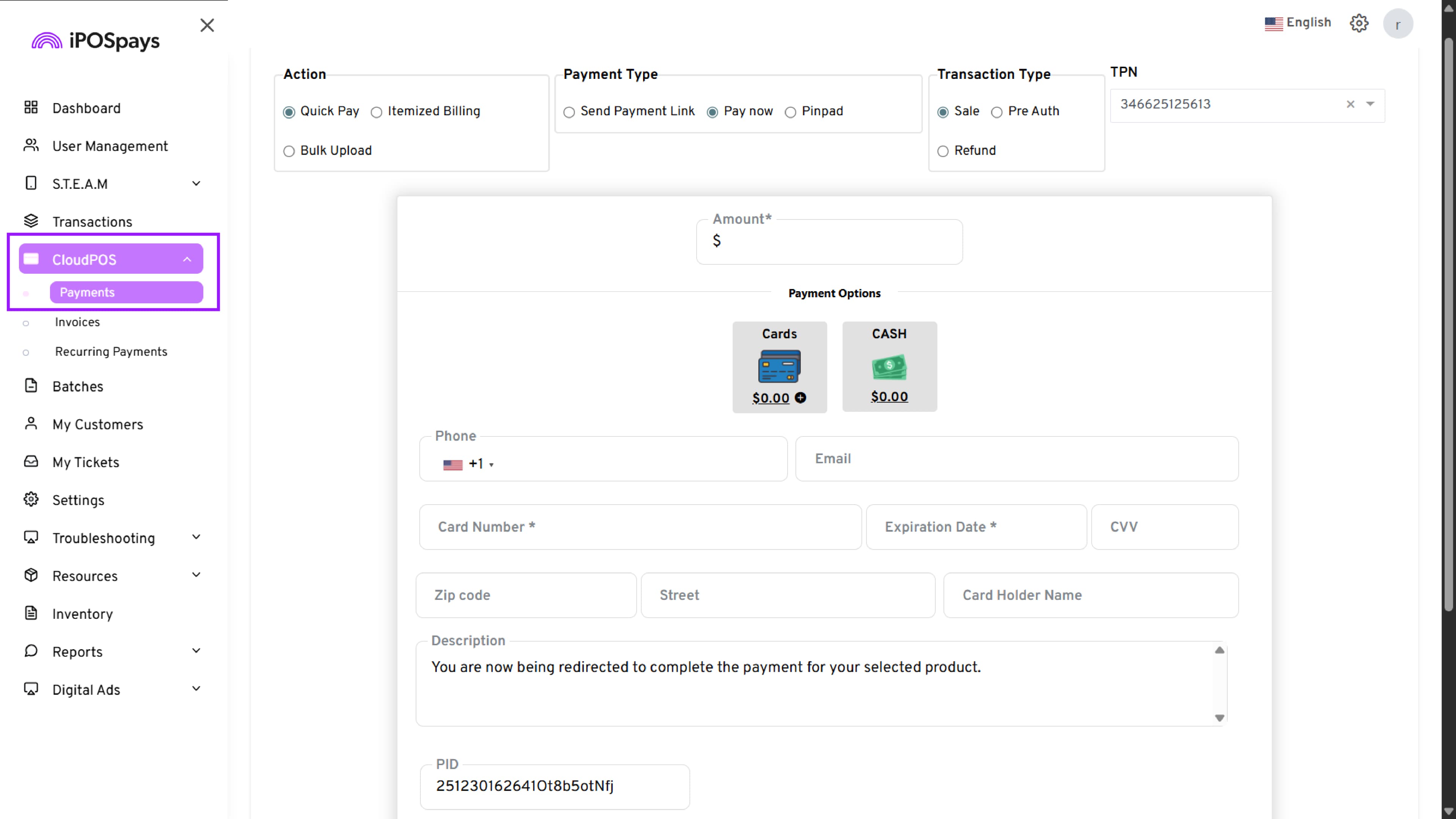 • Supported Platforms: iPOSpays Portal (Merchant Account)