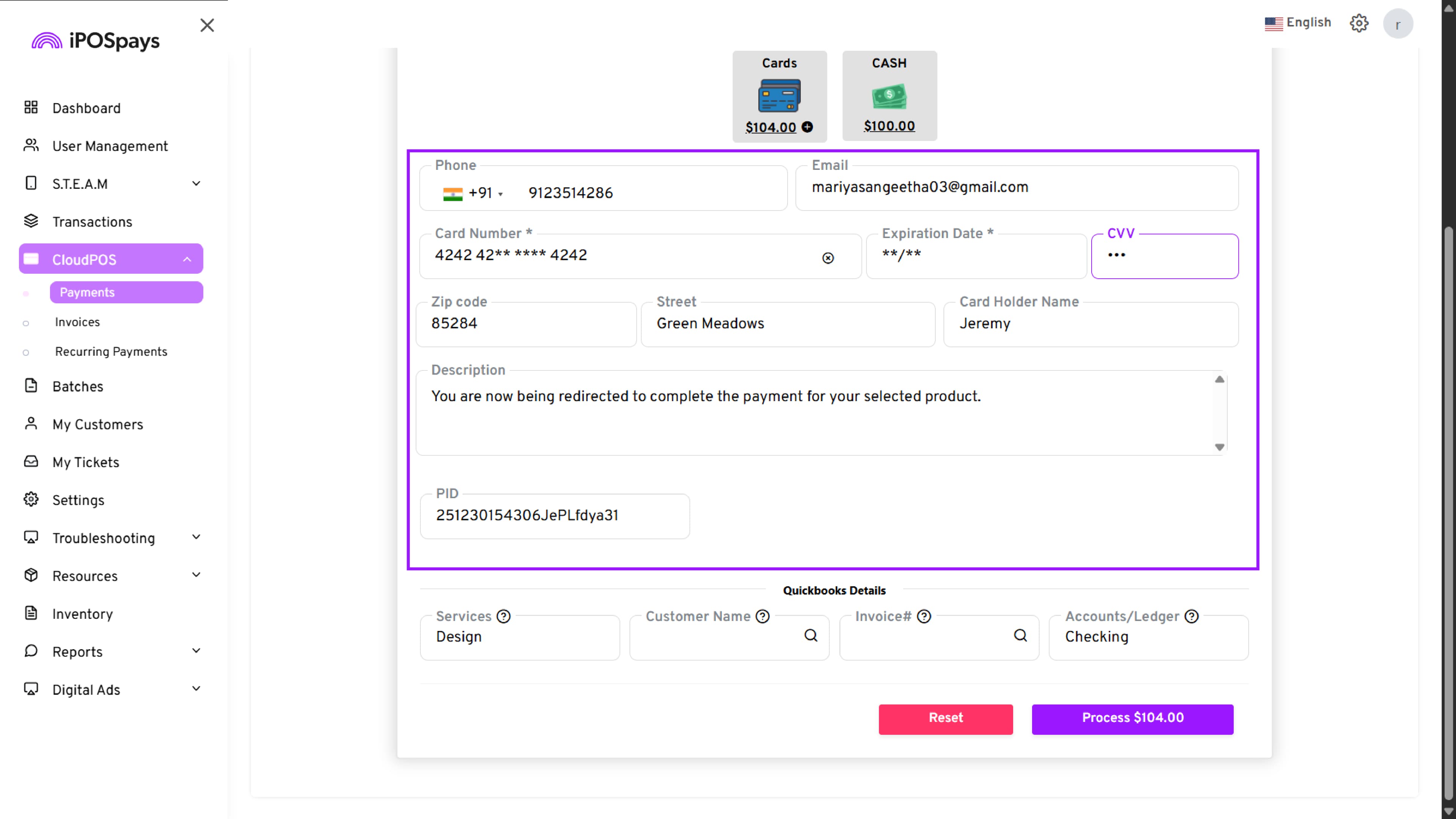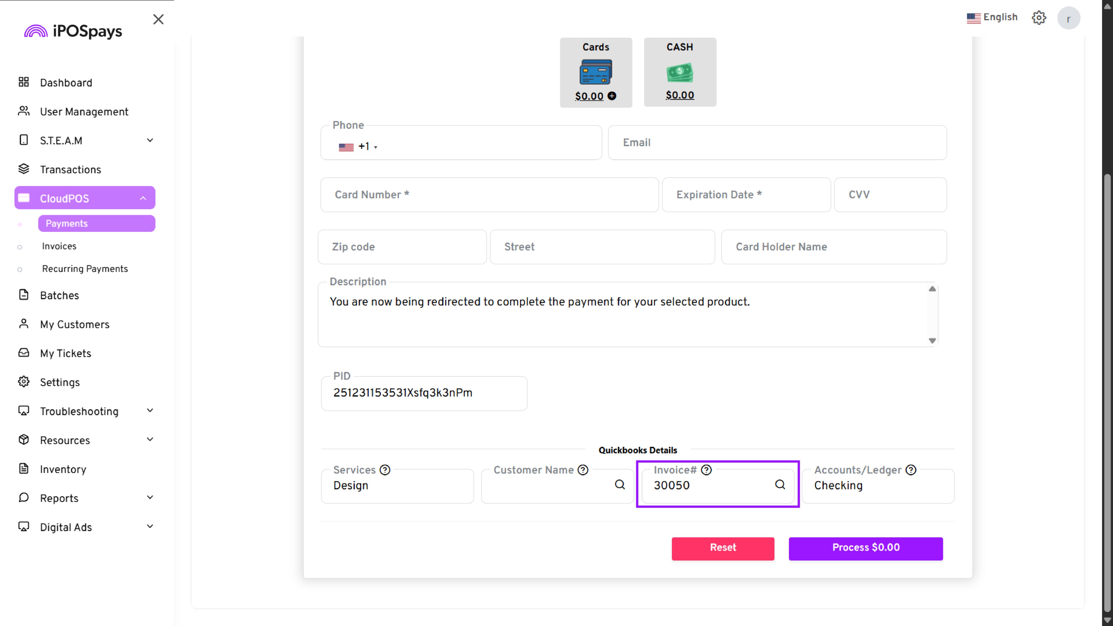 The QuickBooks Integration feature in the iPOSpays Merchant Portal allows merchants to sync their payment transactions with their QuickBooks account seamlessly. Once enabled, all eligible transactions processed via Payment Terminals or CloudPOS will automatically be pushed to QuickBooks under the selected Service and Ledger. This integration eliminates manual bookkeeping, reduces errors, and ensures accurate financial reconciliation.