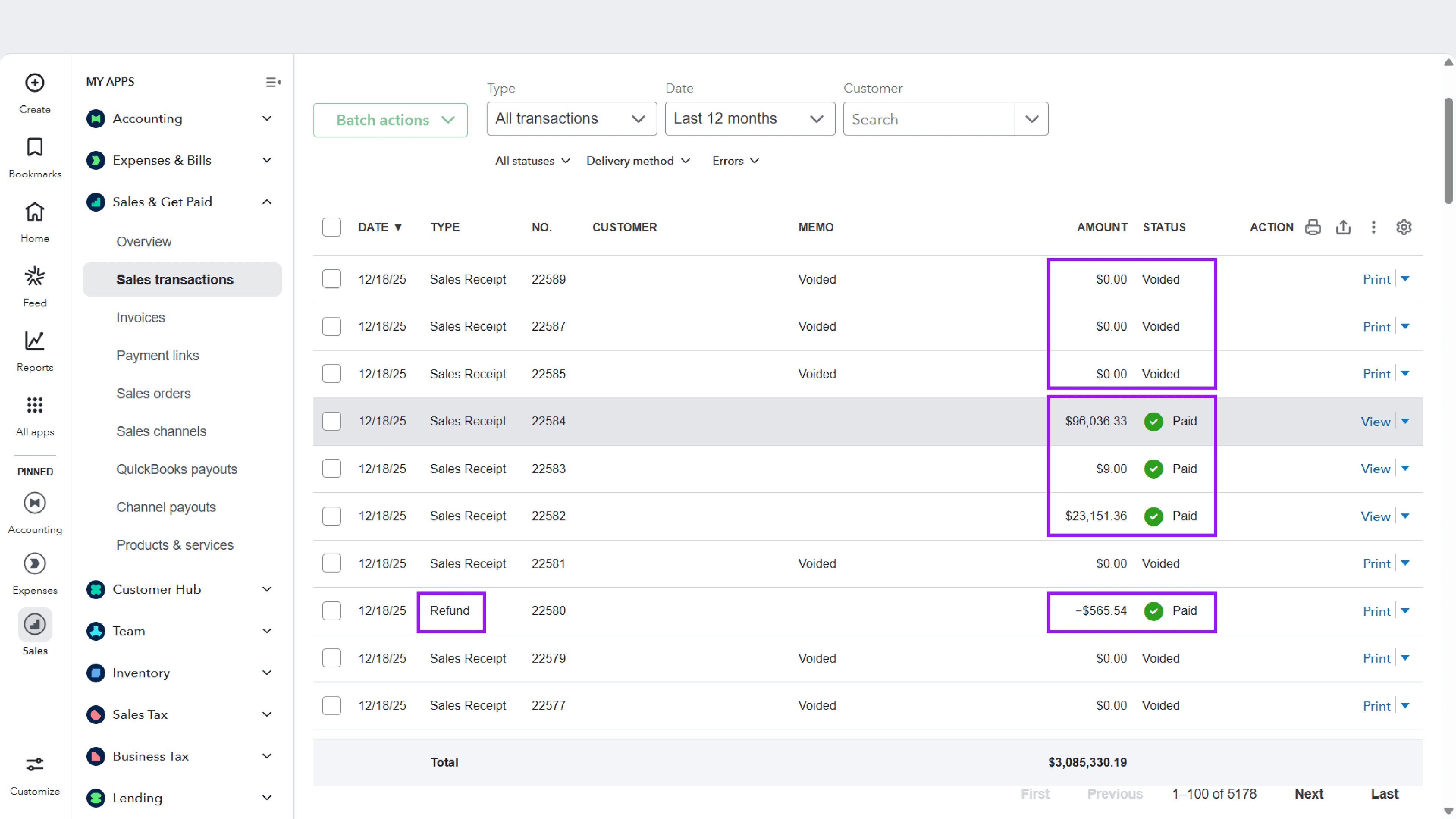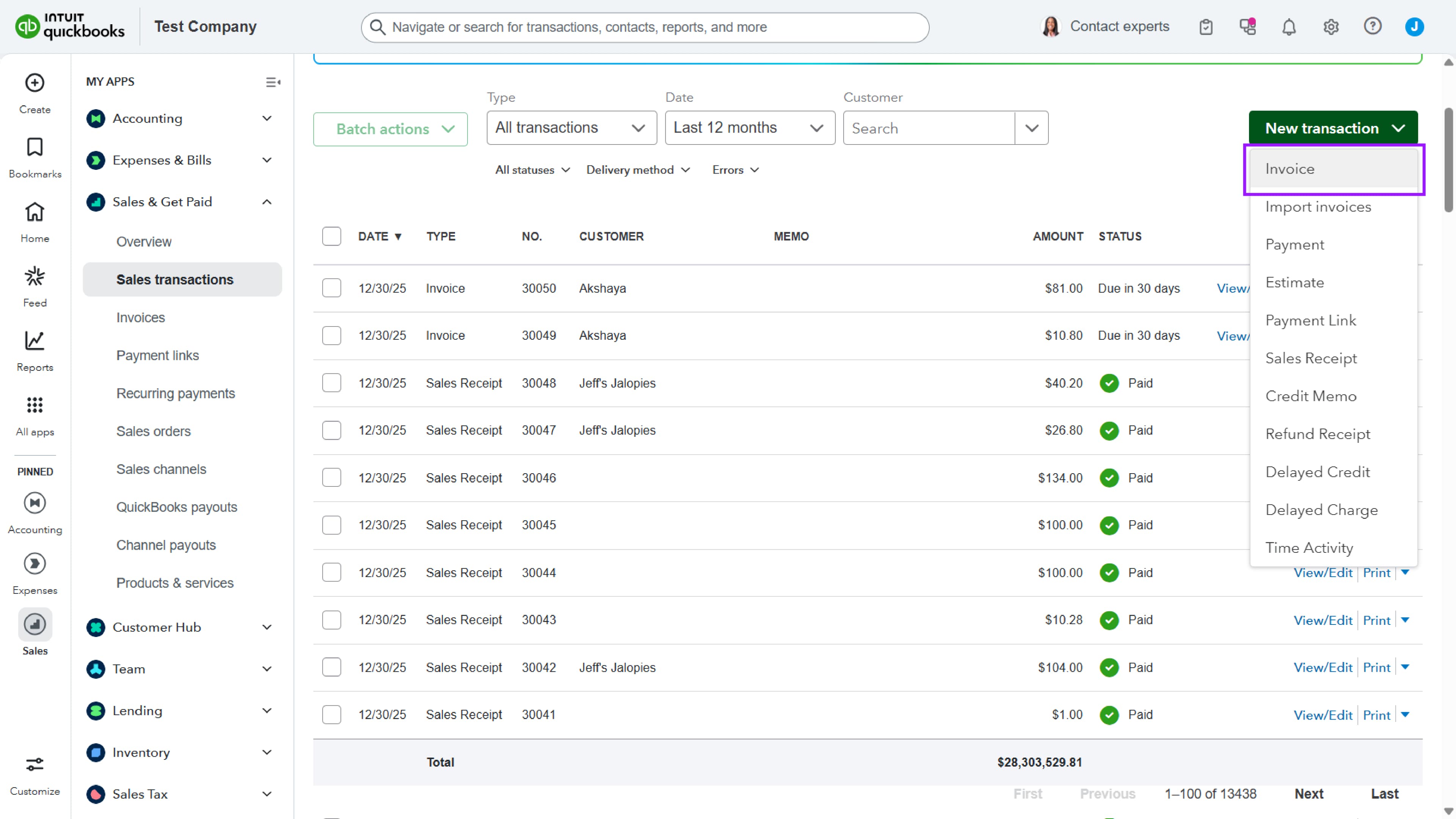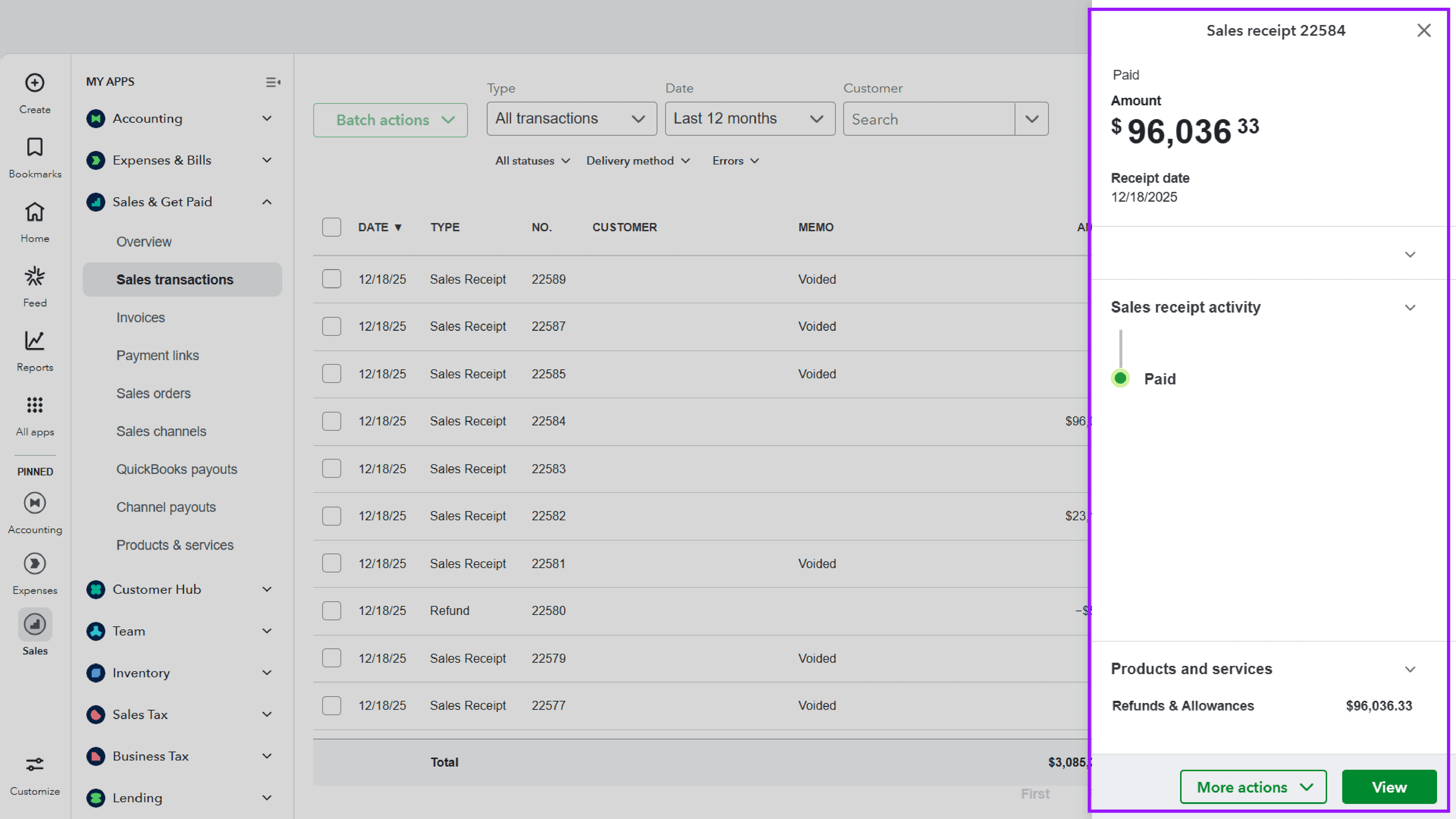 From the left-hand menu, click All apps, then go to: Sales & Get Paid → Sales transactions