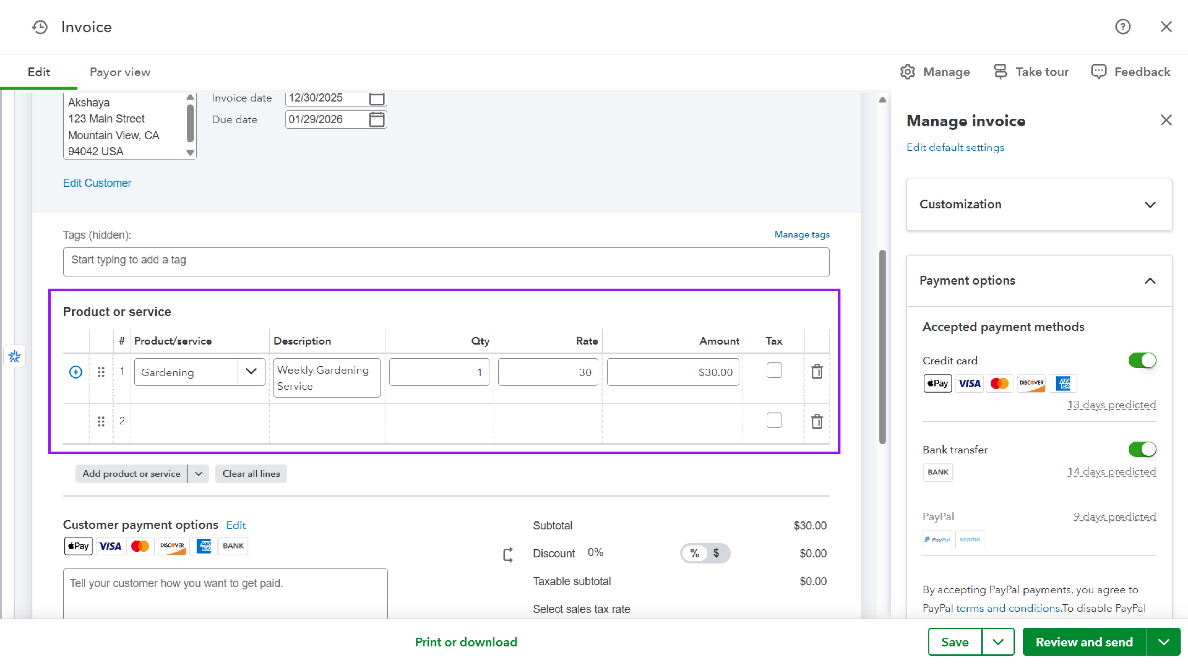 3. In QuickBooks, the transaction appears under the Service and Ledger selected during setup.